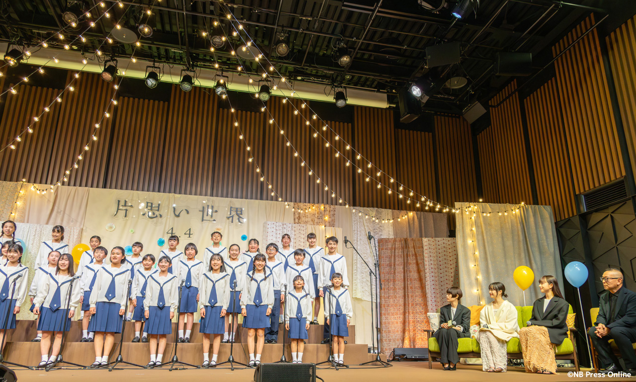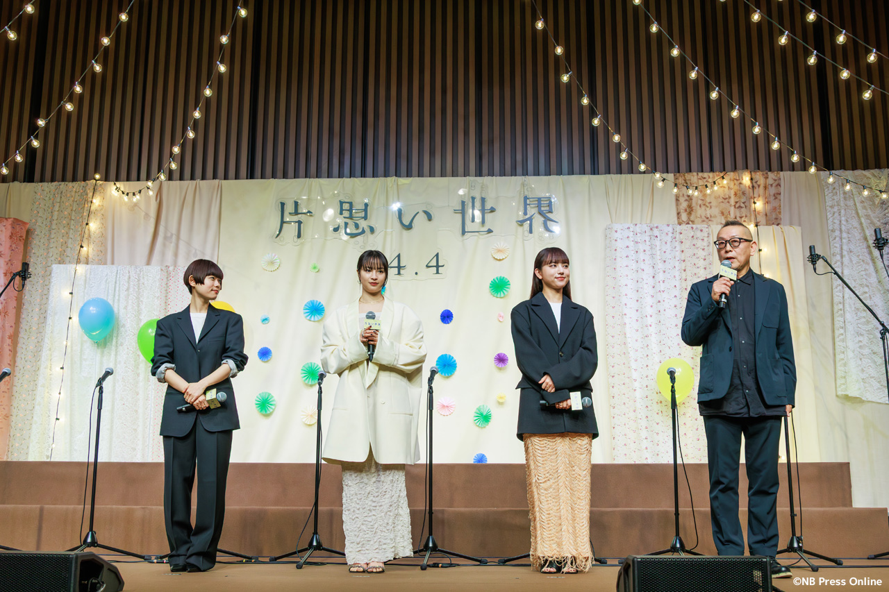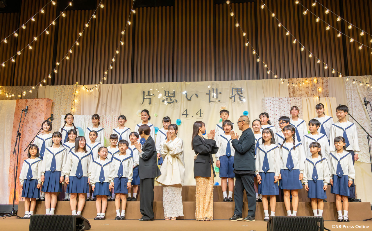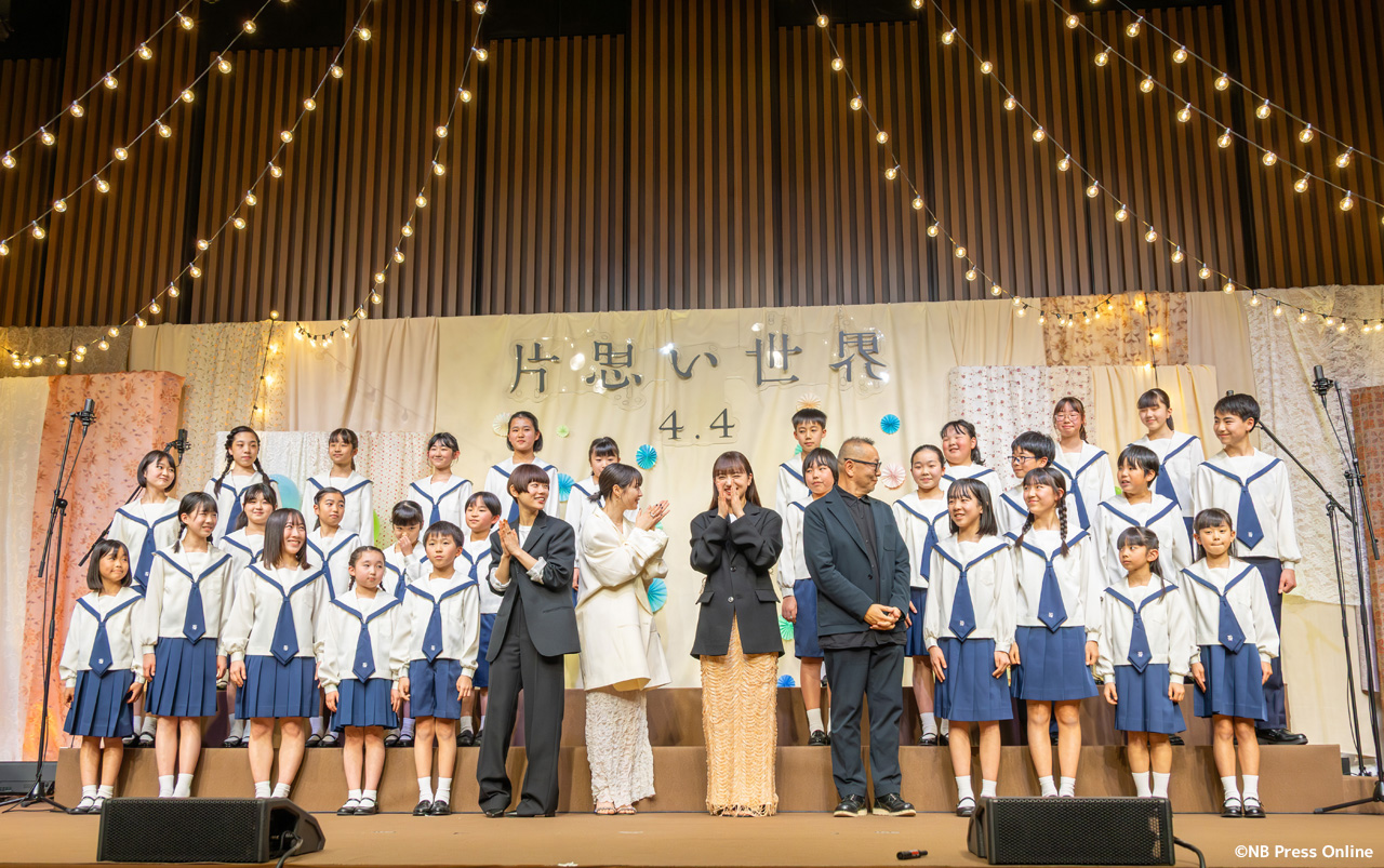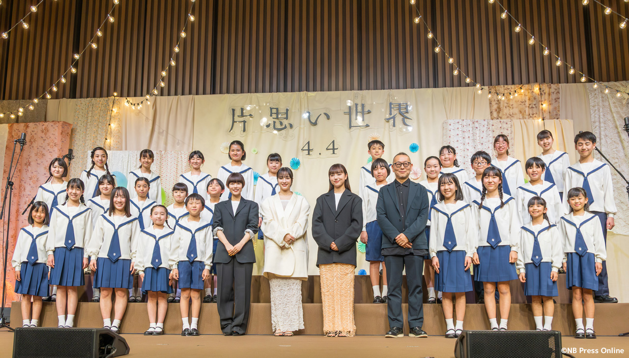2025年3月3日、TODA HALL & CONFERENCE TOKYO ホールB(東京都中央区)にて、映画『片思い世界』完成報告イベントが行われ、トリプル主演の広瀬すず、杉咲花、清原果耶、そして土井裕泰監督が登壇。また、脚本の坂元裕二が作詞したオリジナル劇中歌「声は風」を杉並児童合唱団が合唱披露した。(動画&フォト)