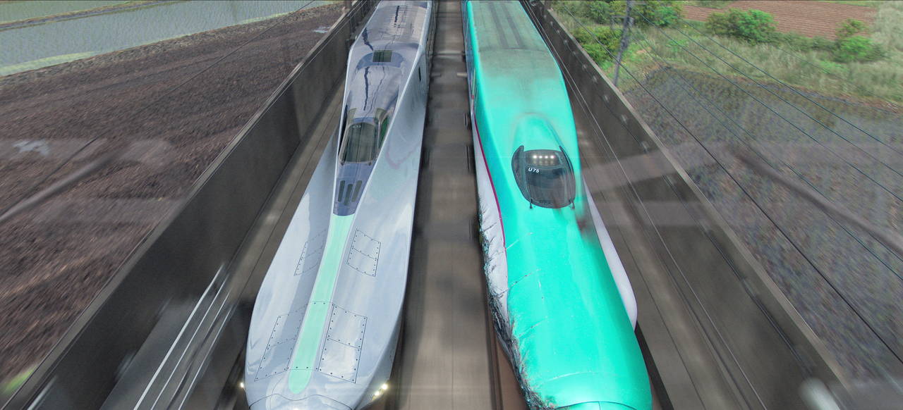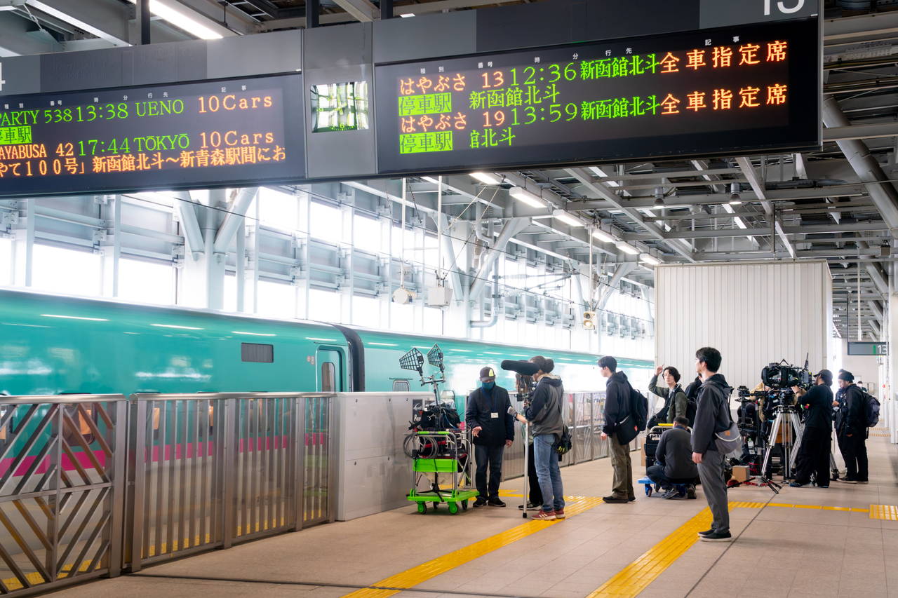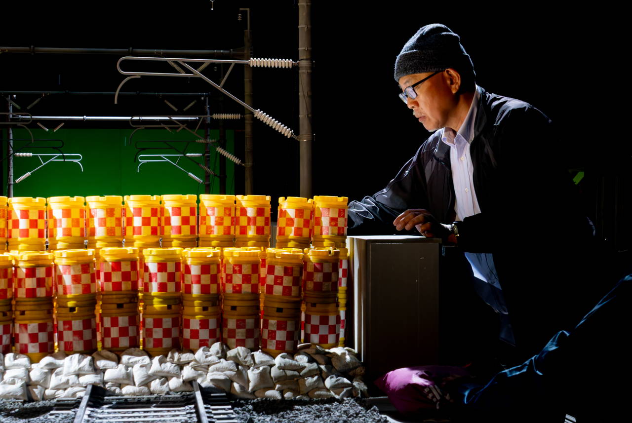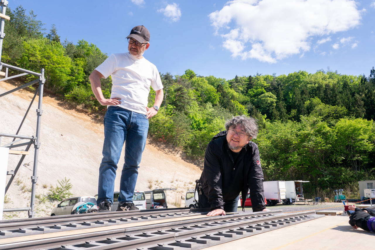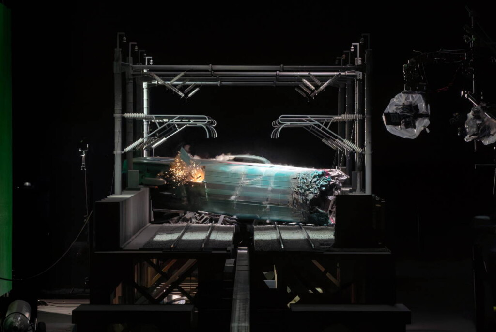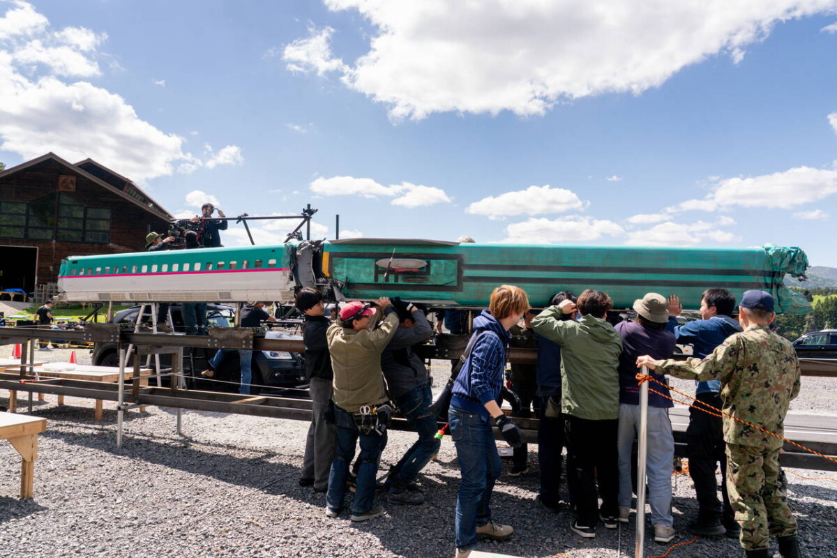 現場では1/6スケールのミニチュア新幹線を作成し、最新技術とアナログを融合させた大迫力の映像を生み出している。