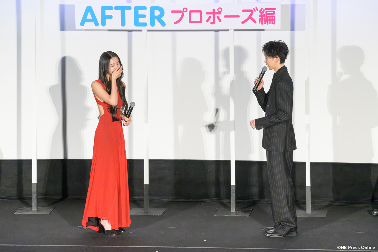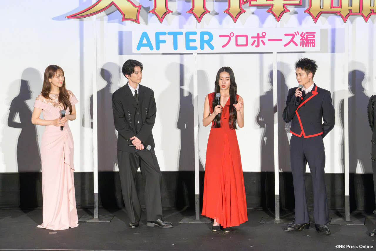 イベント冒頭、キャストと監督が登壇し、会場に集まった観客に挨拶を行った。主演のKōki,は、完結編である『Afterプロポーズ編』を観た観客に会えた喜びを語った。