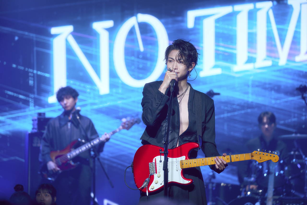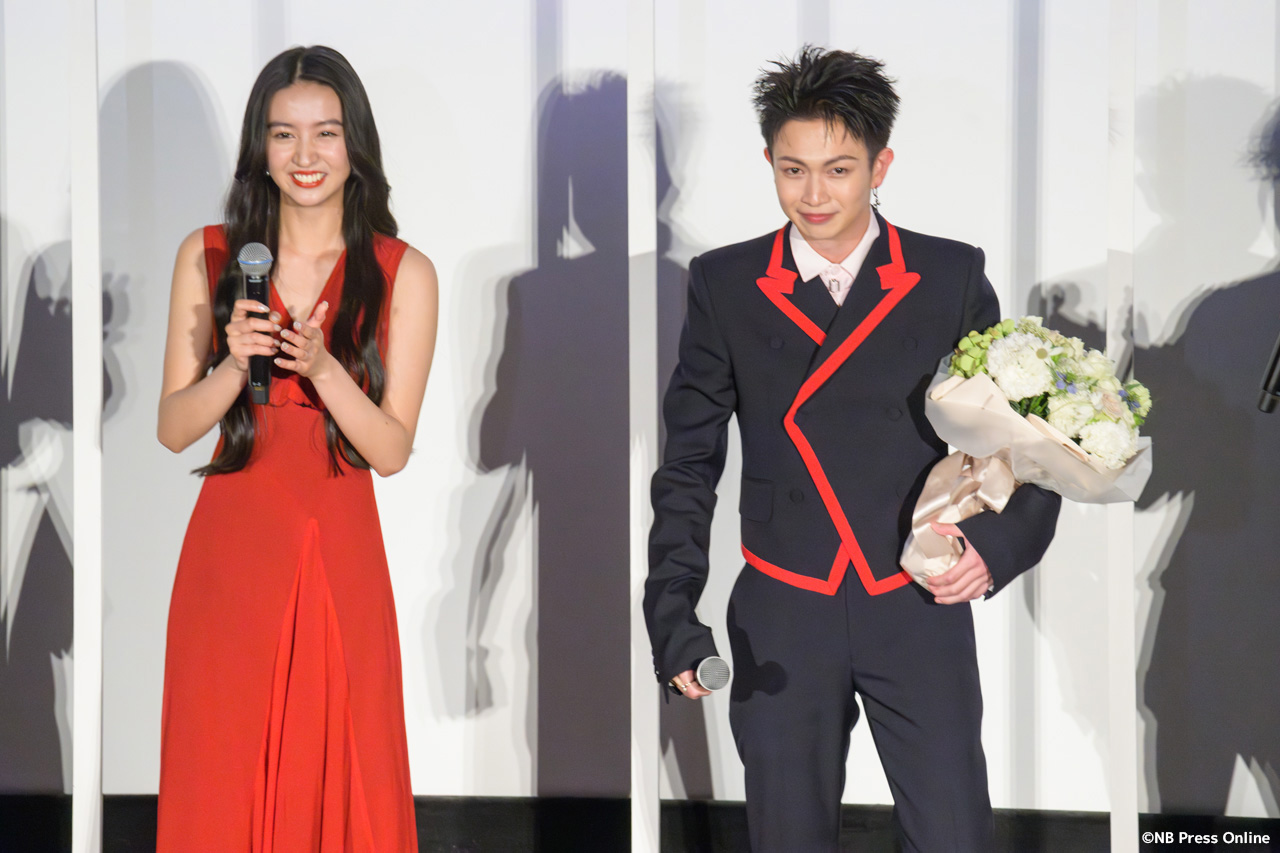急遽登壇が決まったという、かつての俊と悠の同級生で同じバンドメンバーだった葉山楓役の宮世琉弥も舞台挨拶に参加した。渡邊、綱とのバンドシーンについて、「すごい楽しかった」と語り、一日で撮影したそのシーンでは、ギター、ドラム、ベースなど「本当に演奏してる」と明かした。練習時間が少なかったため不安もあったそうだが、「すごくうまくいったので良かった」と満足そうに。