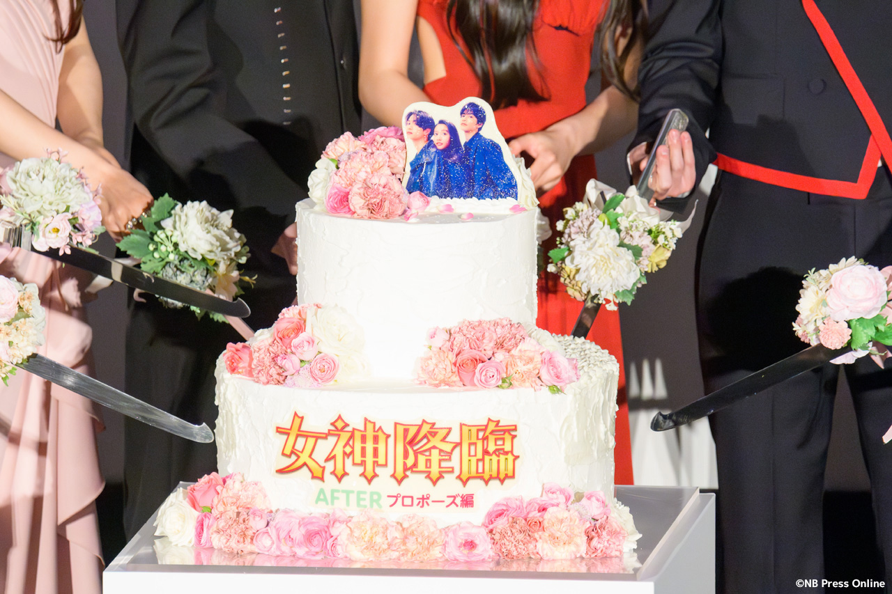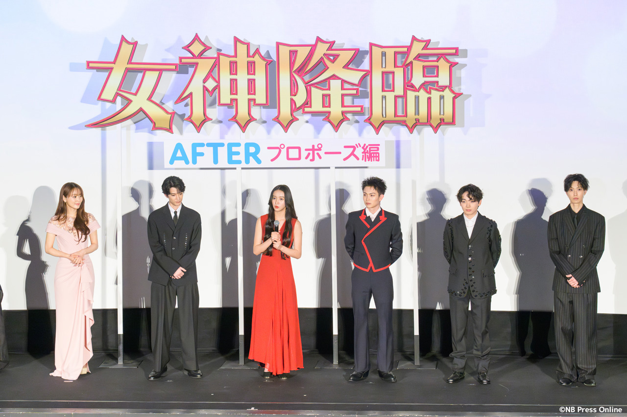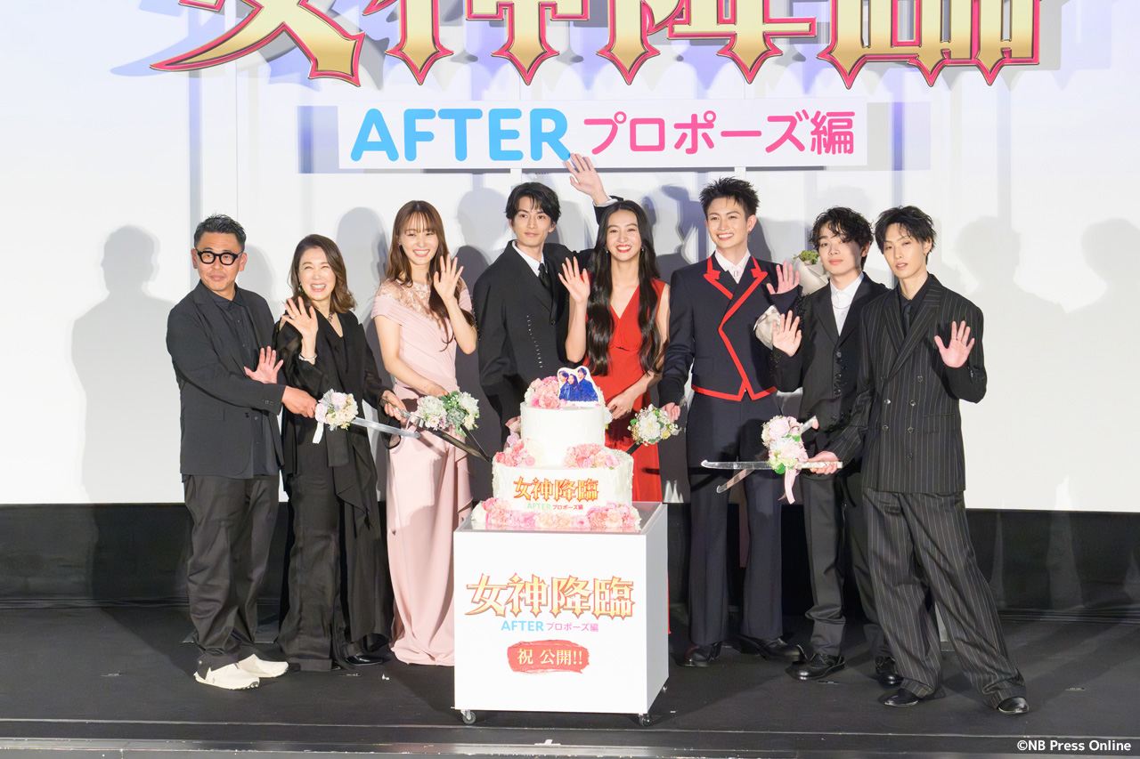 プロポーズ選手権での賑やかな一幕もあり、終始和やかな雰囲気で進行した舞台挨拶は、フォトセッションを経て、盛況のうちに幕を閉じた。本作『女神降臨 Afterプロポーズ編』は、全国の劇場で公開中だ。