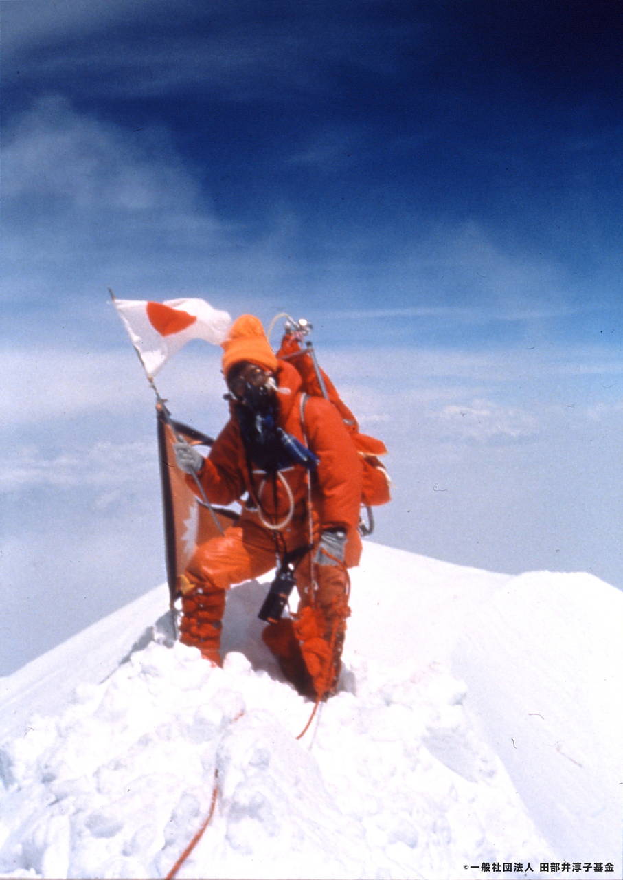 “女性だけで海外遠征を”を合言葉に女子登攀クラブを設立し、1975年にエベレスト日本女子登山隊の副隊長兼登攀隊長として、 世界最高峰のエベレスト(ネパール名:サガルマータ、中国名:チョモランマ)の女性世界初登頂に成功した田部井淳子。その後も飽くなき挑戦は続き、生涯で76ヵ国の最高峰・最高地点の登頂を成功。