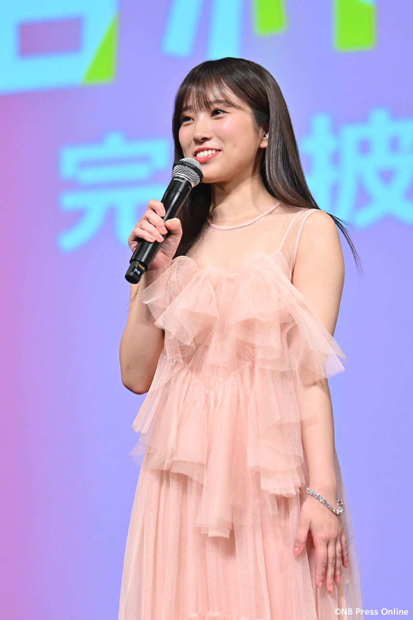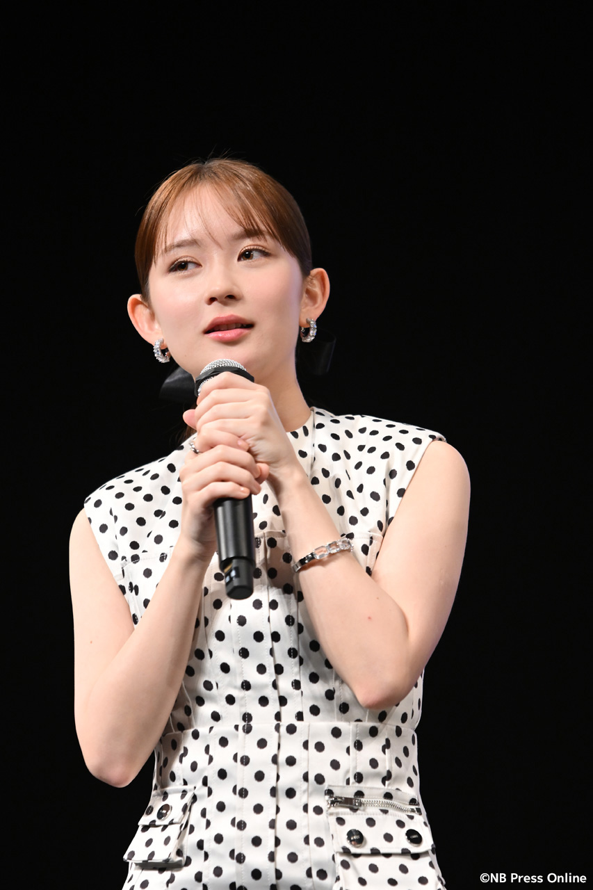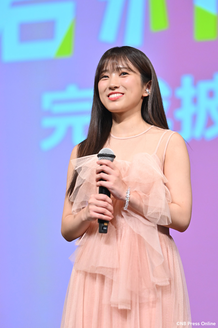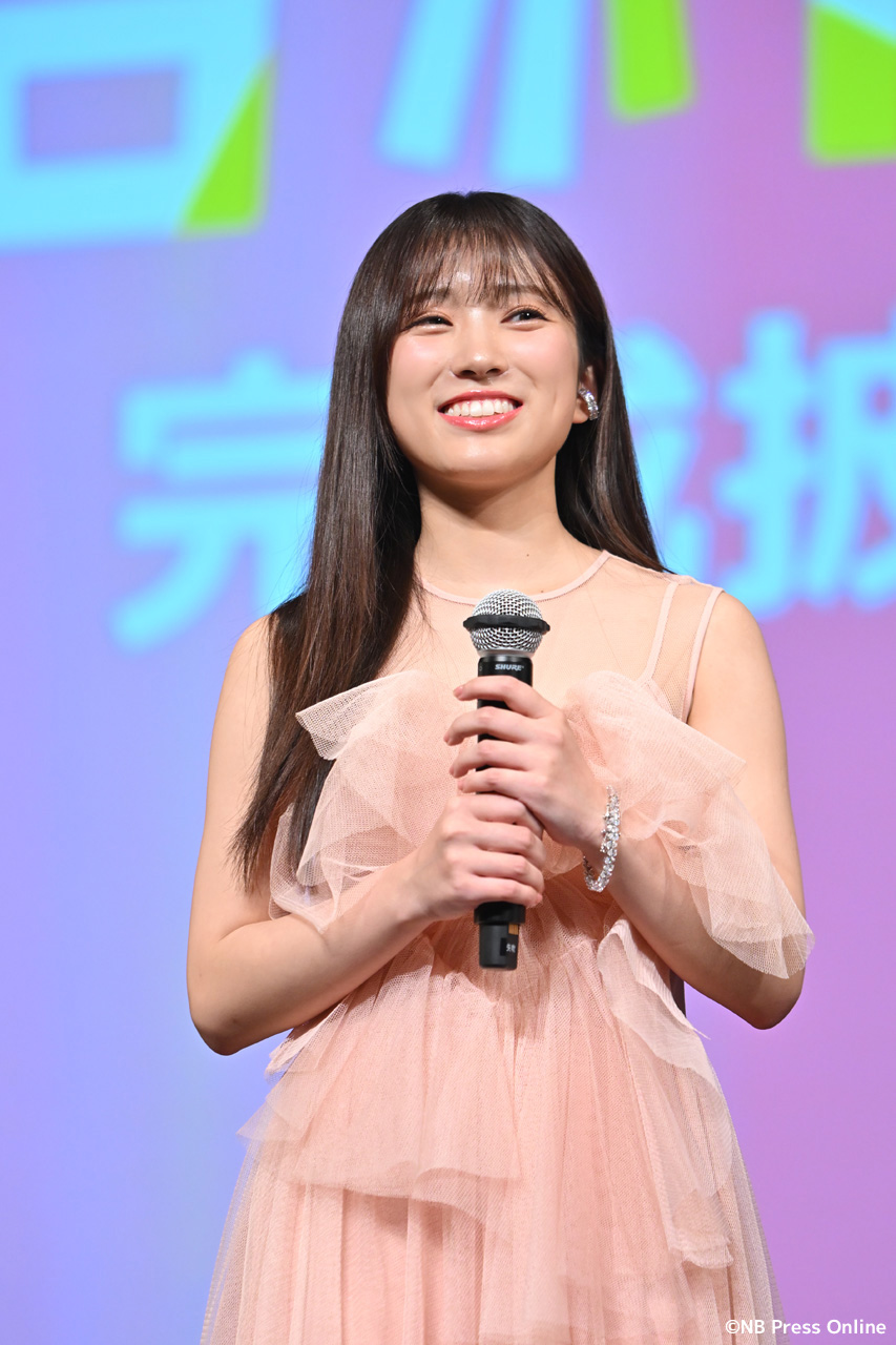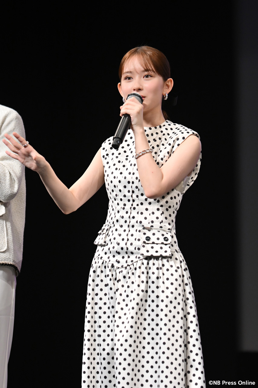 「撮影中は関西弁が止まらず、何回かNGを出させてもらった」と明かすと「出させてもらった」という言い方に自分でツッコミを入れるなど、会場の笑いを誘った。