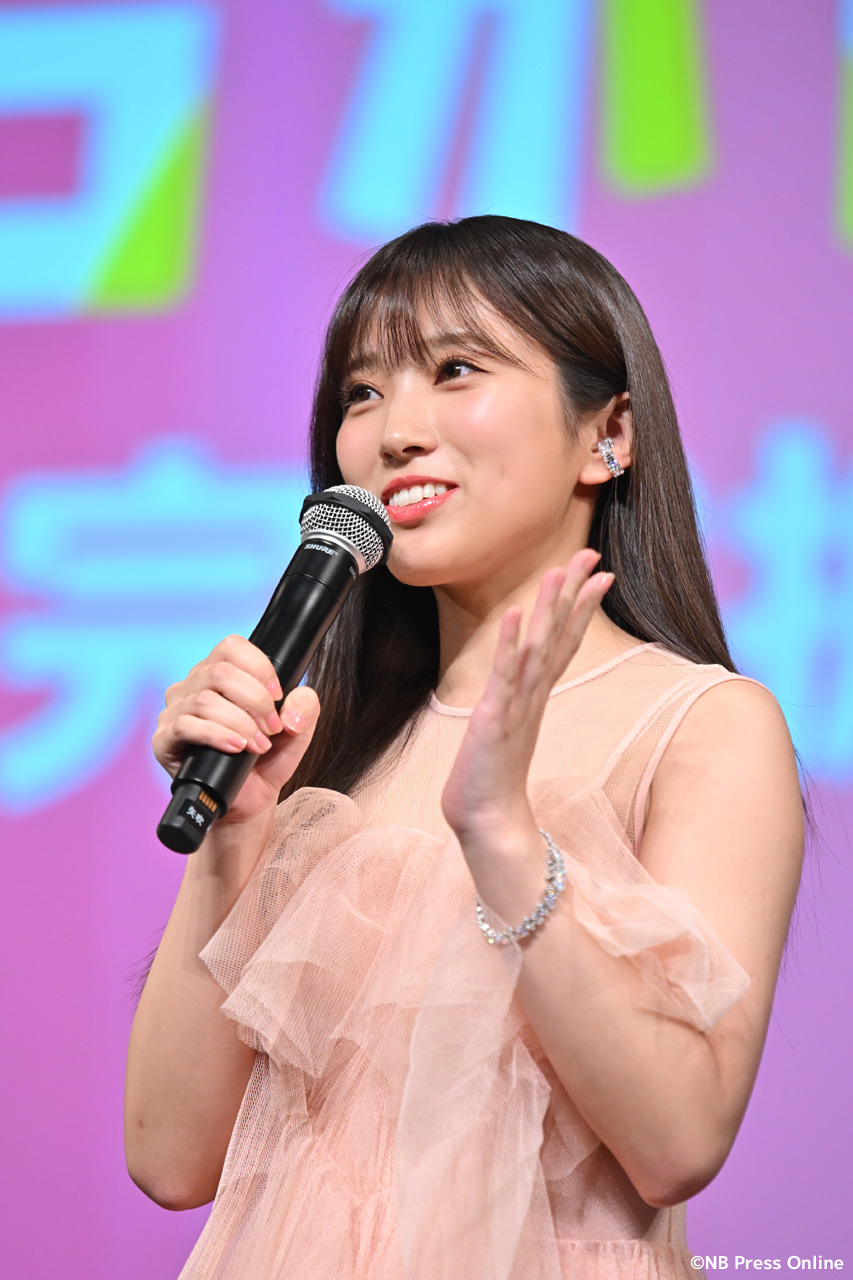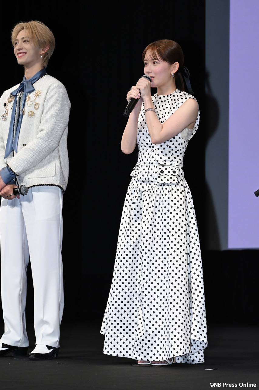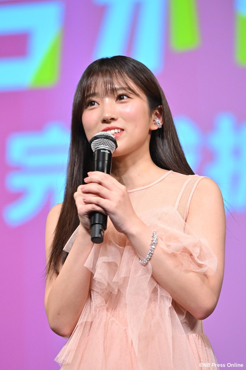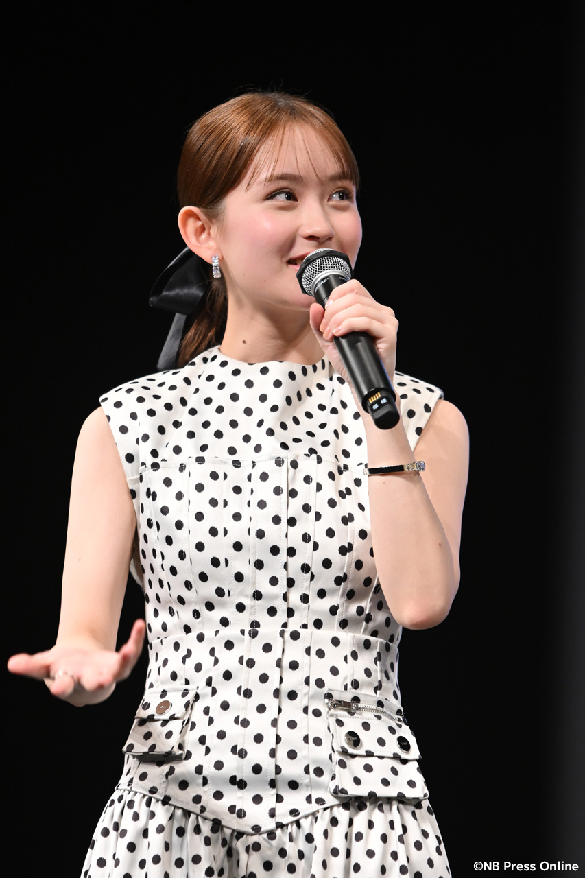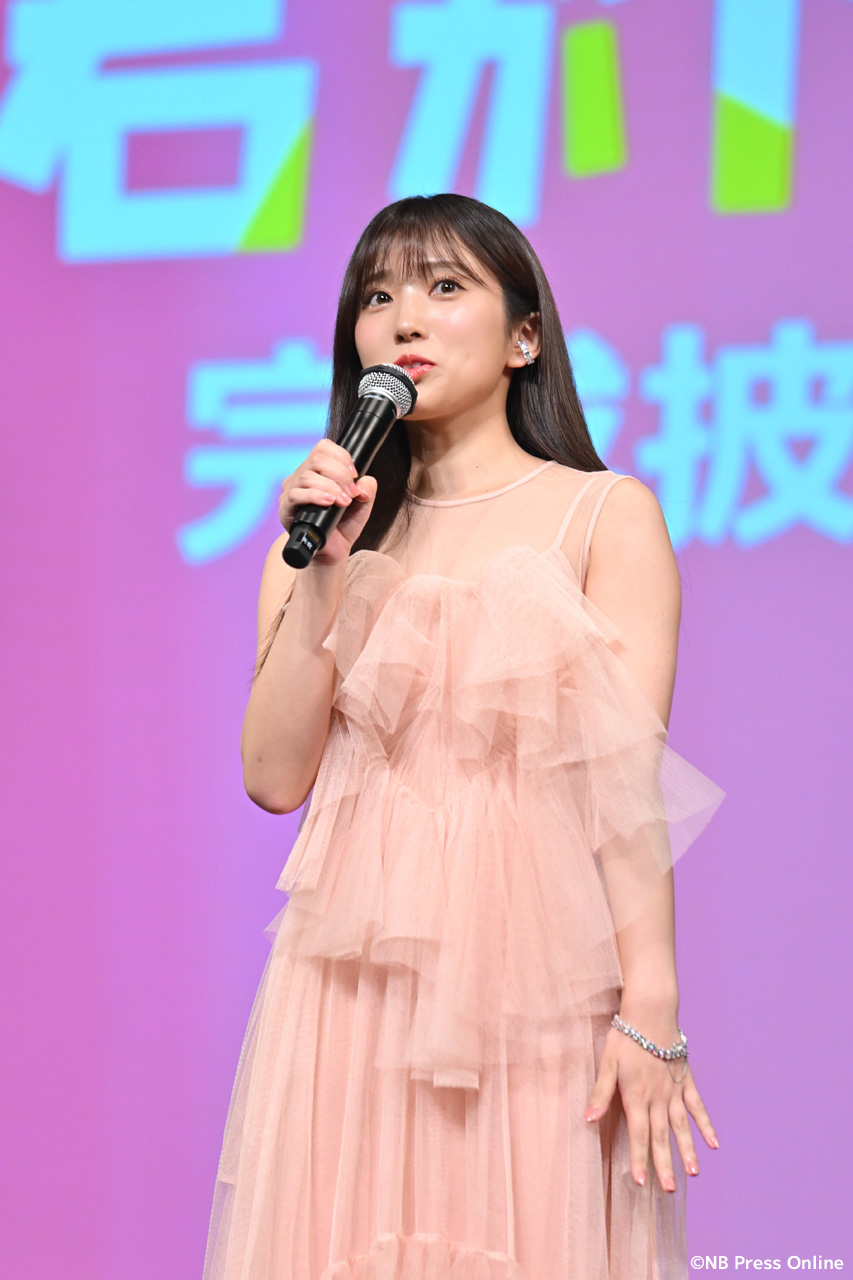 「撮影中は関西弁が止まらず、何回かNGを出させてもらった」と明かすと「出させてもらった」という言い方に自分でツッコミを入れるなど、会場の笑いを誘った。