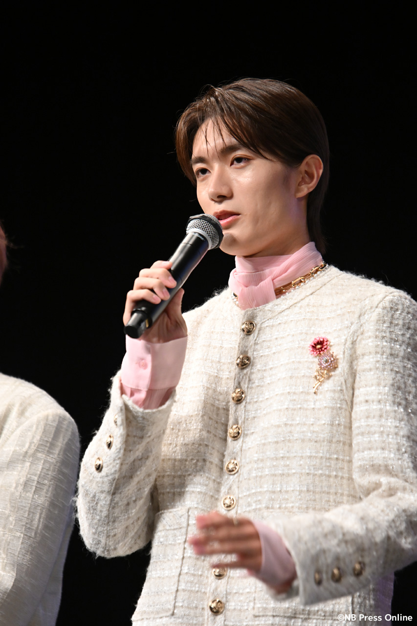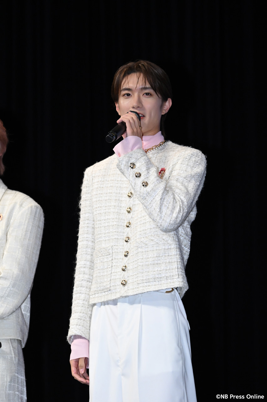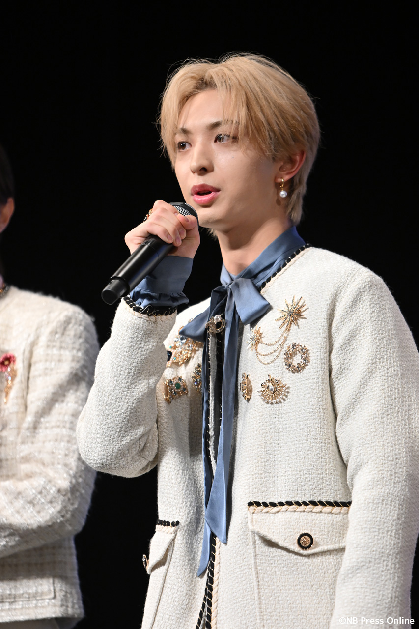 ピュアな末っ子・成瀬一生役のNAOYA(MAZZEL)は、前の登壇者の挨拶を受けてか、やや困惑した様子を見せながら「なんか知らんけどお尻プリプリ!何もなくてすいません。NAOYAです。お願いします」と話し、笑いを誘った。