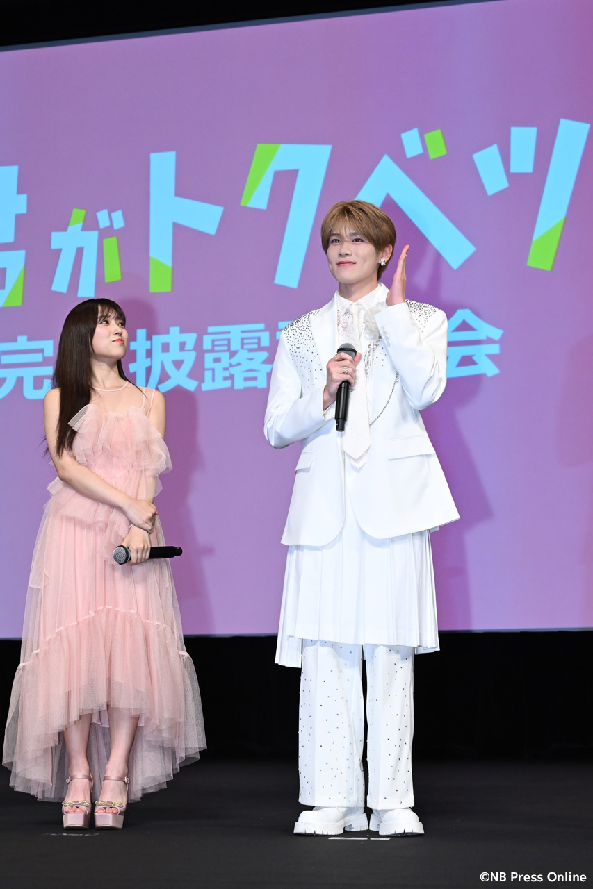 演技初挑戦となったNAOYAは、「僕が初めて挑戦したデビュー作がこの『君がトクベツ』で良かったです。僕にとってすご大切な作品ですし、愛が溢れてる作品なので皆さん是非愛を受け取ってください」とファンに呼びかけた。