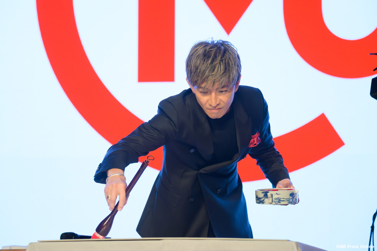 ステージに書道セットが登場し、「自信のほどはいかがですか?」と問われた木村は、「いや、こんな無茶ぶりないですよね」と苦笑。観客が見守る中、用意された用紙に向かい、「エムット」のロゴマークを一気に書き上げた。書き上げた作品が垂直に掲げられると、会場からは大きな拍手が起こった。