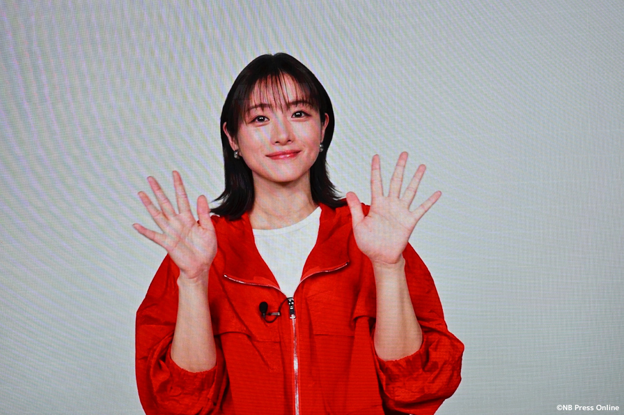 ビデオメッセージで、石原さとみはMUFGのCMにこれまで多数出演しているが、今回は新ブランド・新サービスということで特に力が入っていたこと、共演者との仕事が新鮮だったことに触れた。