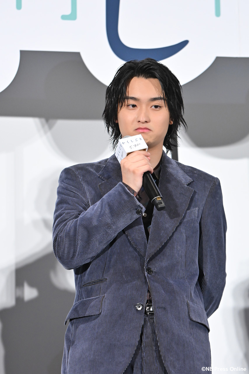 イベントには、W主演を務める奥平大兼と出口夏希をはじめ、佐野晶哉(Aぇ! group)、菊池日菜子、早瀬憩といった主要キャスト、そしてメガホンをとった中川駿監督が登壇。満員の観客を前に、いよいよ公開を迎える心境や、撮影中のエピソードなどが明かしたほか、本作にちなんで最近あった純度100%涙の体験を明かした。