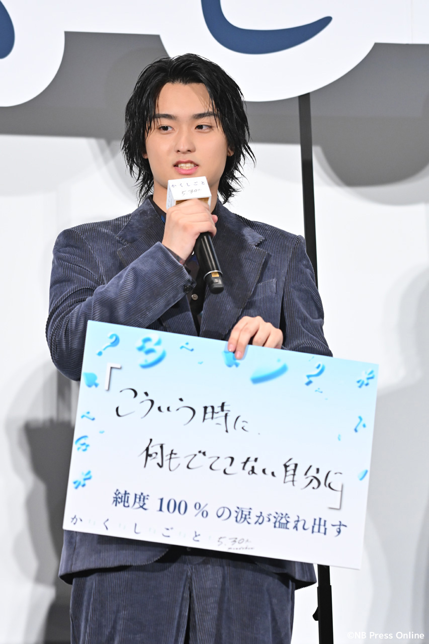 出口は、本作を通して「言葉にしないとこうやって勘違いして伝わっちゃうことってやっぱりあるんだ」ということを改めて感じ、「言葉って大事だな」と実感したという。学生だけでなく大人も「格好つけちゃったりして言えないこととかあるけど、この映画を見て言葉に出して気持ちを伝えることて大事なんだよって」思ってもらいたいと語った。