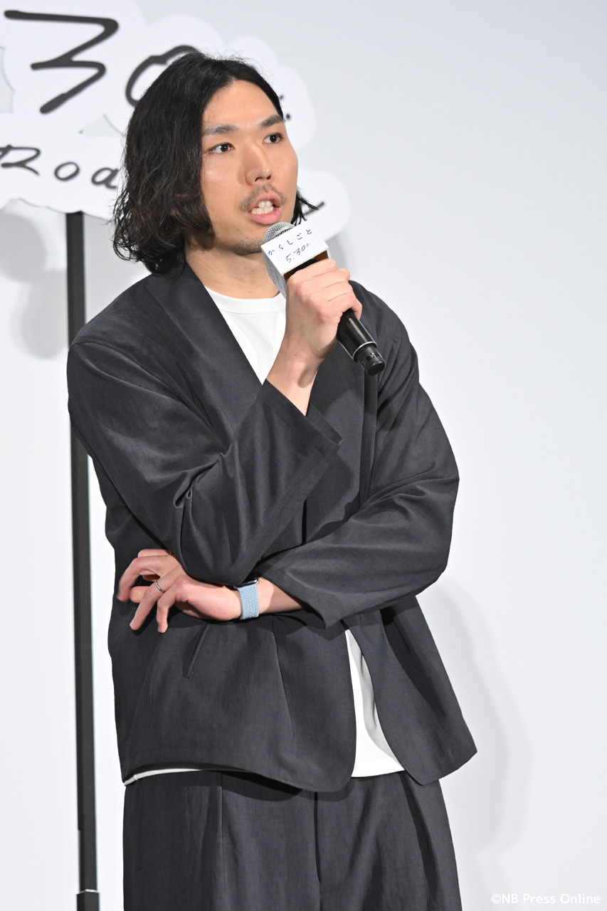 ミッキーの幼馴染で京の親友・ヅカこと高崎博文を演じた佐野晶哉は、「お集まりいただいてありがとうございます。この5人の空気感がそのままにスクリーンにも映ってたと思うので、この仲の良い感じで作品がより楽しくなる話をしたいと思います」と語った。