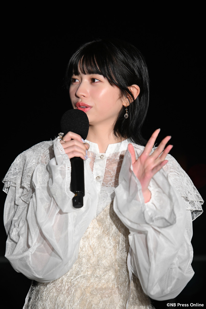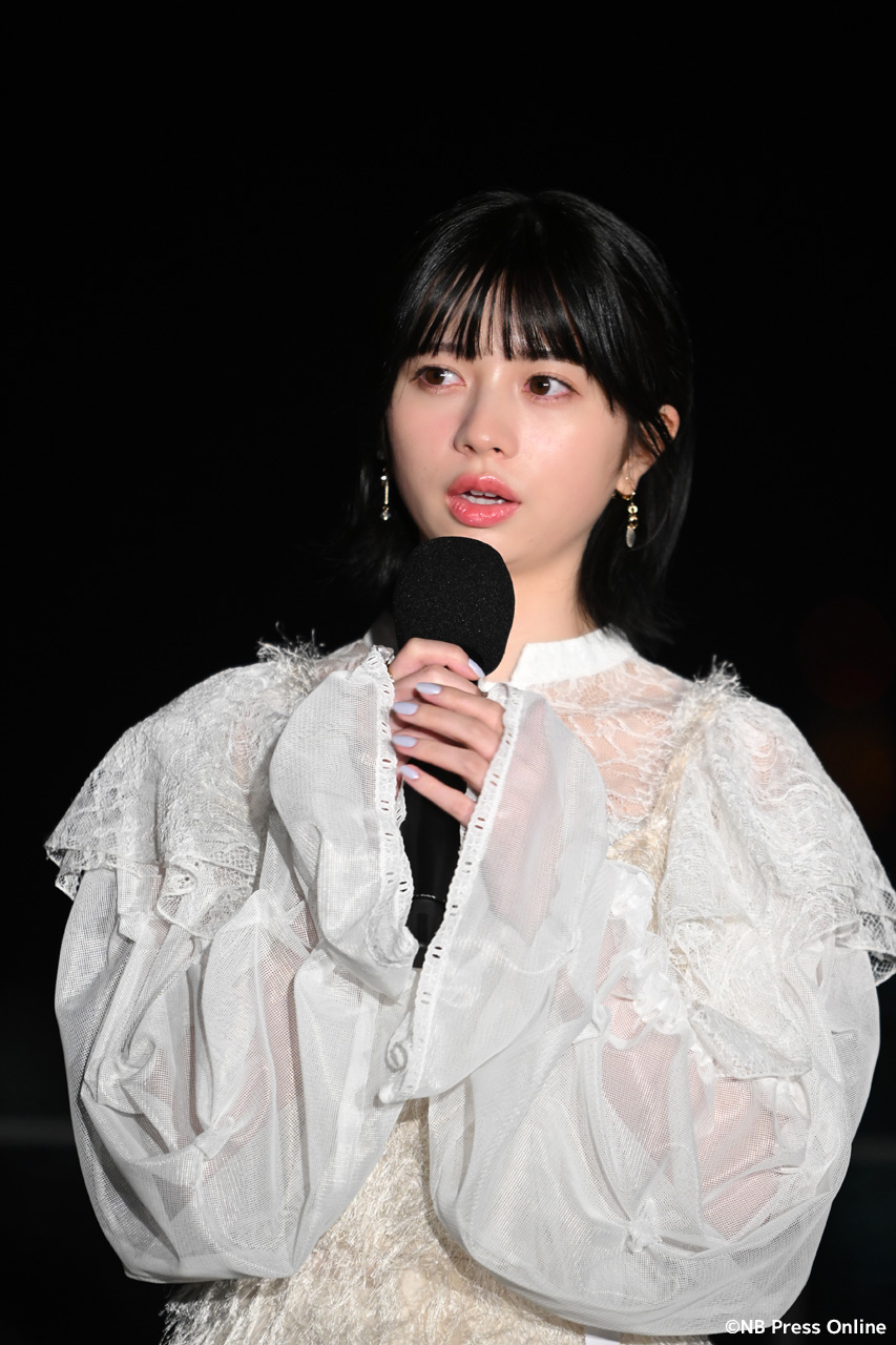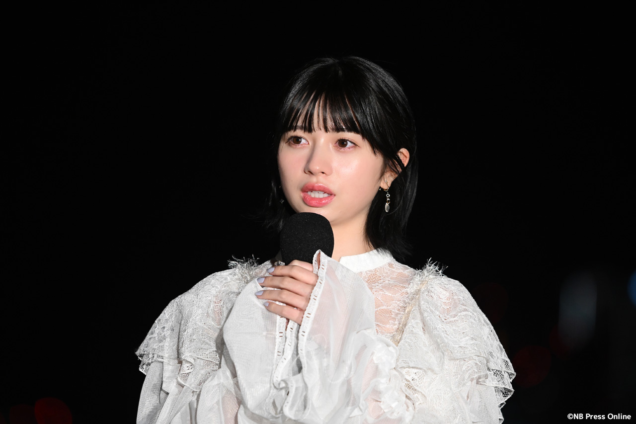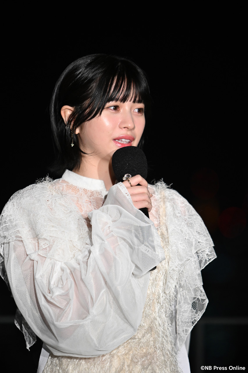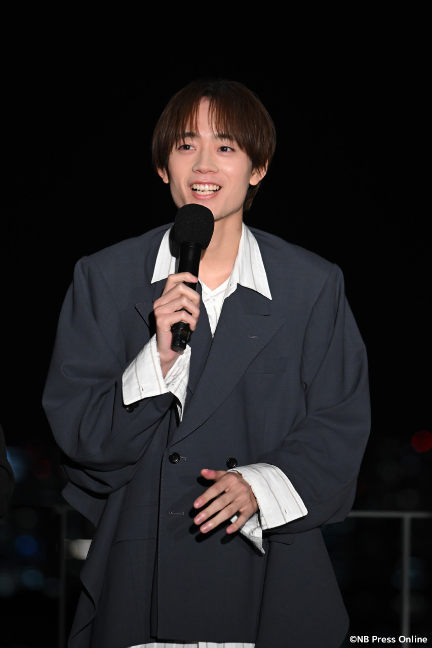司会の三原氏から、早速会場である新宿バルト9の屋上、ヘリポートに立ってみての感想を求められると、桜田は、「ヘリポートに立ったことなんて人生初めてです」と語り、「多分初めての方も多いと思うんですけど、本当にすごくキラキラしていて、雨も降らずに本当に安心しました」と、イベントが無事開催できた安堵と会場への感動を述べた。