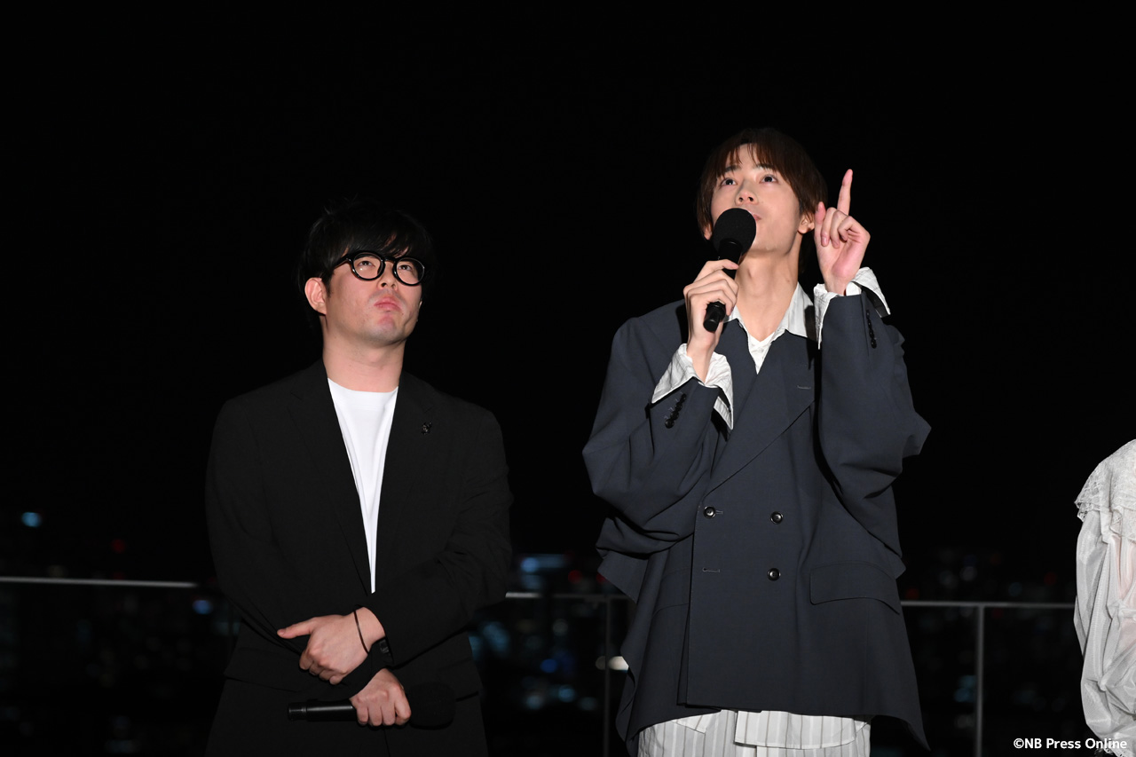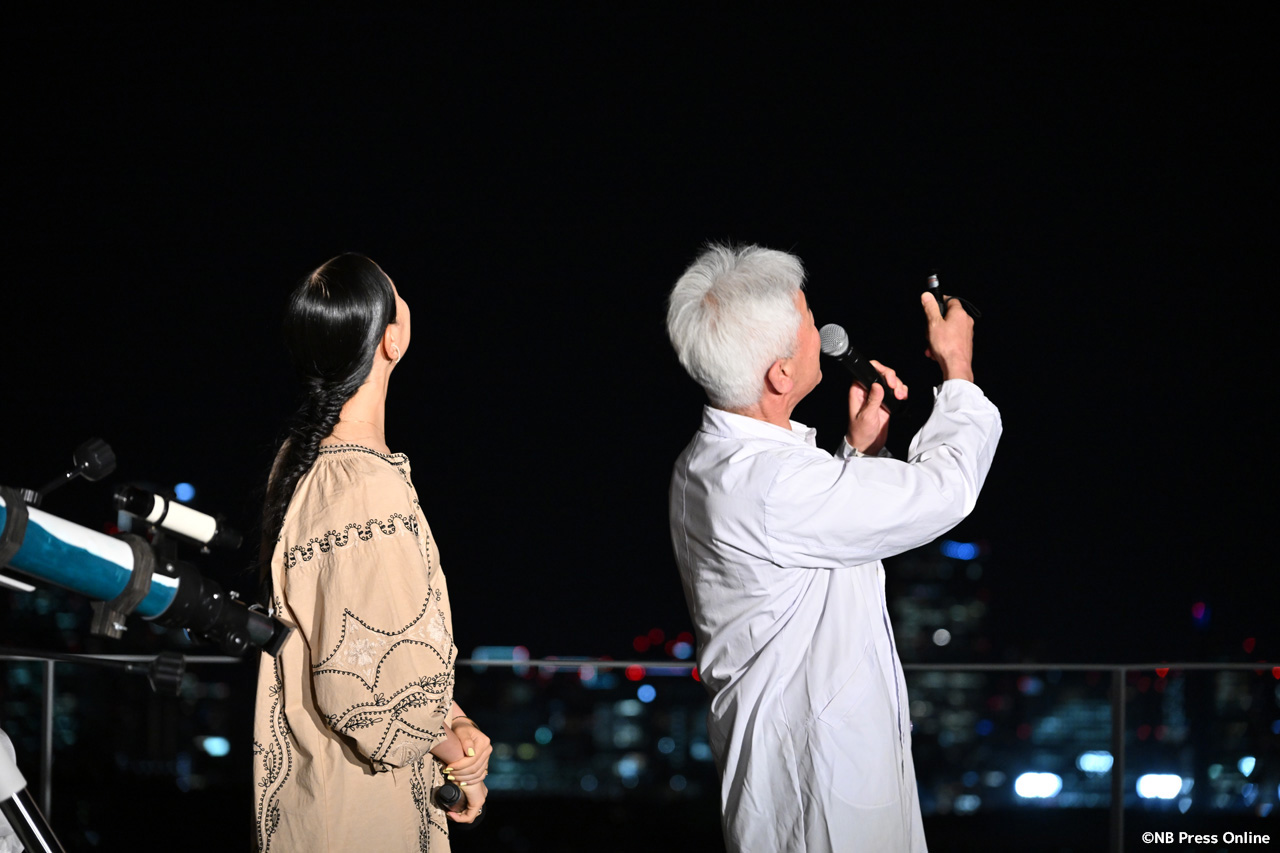本作の撮影は、東京だけでなく、茨城(土浦)や長崎(五島)でも行われた。司会が山本監督に、様々な場所で星空を見た経験を踏まえ、今日の東京の星空の感想を問うと、監督は、「五島の満点の星空もすごかったんですけど、やっぱりこの都会での東京でしか見れないようなネオンがちょっと星みたいに見えるような気もします」と、五島の自然な星空と東京のネオンがきらめく夜景との対比について独自の視点を示した。
