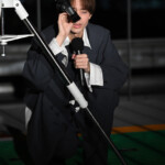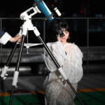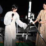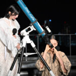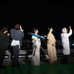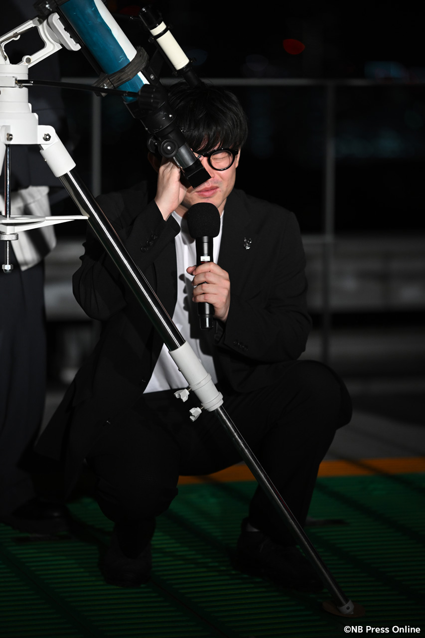 望遠鏡の準備が進められ、いよいよ登壇者による星空観測が始まった。先生が望遠鏡の操作を行い、まず中野が覗き込んだ。感想を求められると、「すごく輝いている!」と感動した様子。