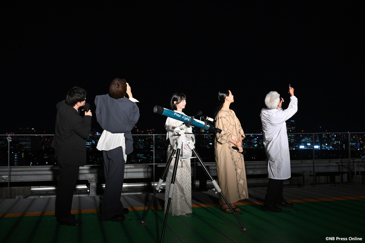 この季節(5月から6月)に東京で見られる星について先生に質問が投げかけられると、「明るい等星はもちろん見えますし、意外と、三等星ぐらいの星までは見えます」と説明した。また、この日は新月のため月は見えないという話になり、司会の「月も一番近い星ですよね」という問いかけに、桜田が「セリフみたい」と反応。劇中のセリフでもあることに触れ、盛り上がりを見せた。