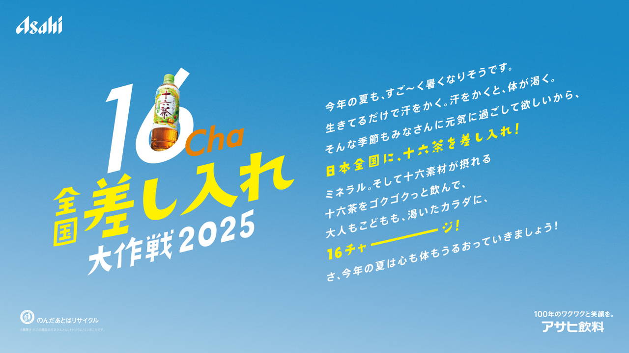 アサヒ飲料は、汗をかく、この季節も元気に過ごしてもらいたいという想いで、「日本全国に、十六茶を差し入れ!」をテーマに、2025年5月から、『日本全国16Cha差し入れ大作戦』を実施している。「16Cha 全国差し入れ大作戦@東京」は、同施策の一環として、5月29日(木)と30日(金)の2日間にかけて開催。