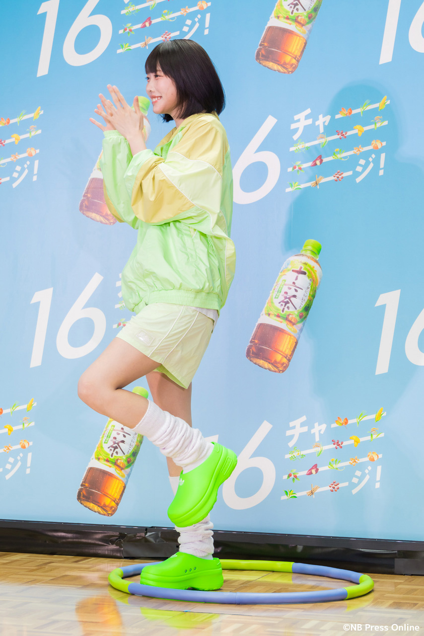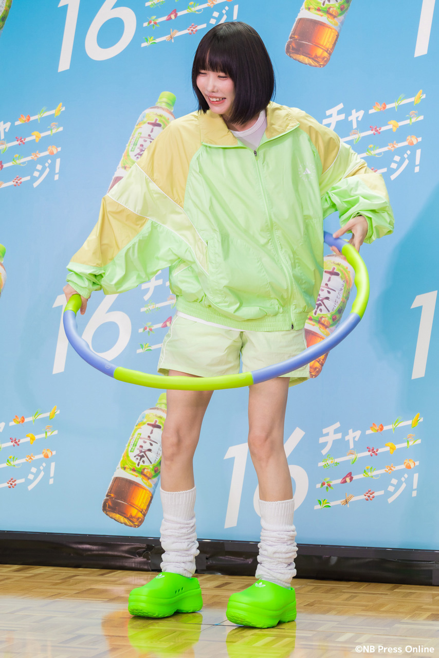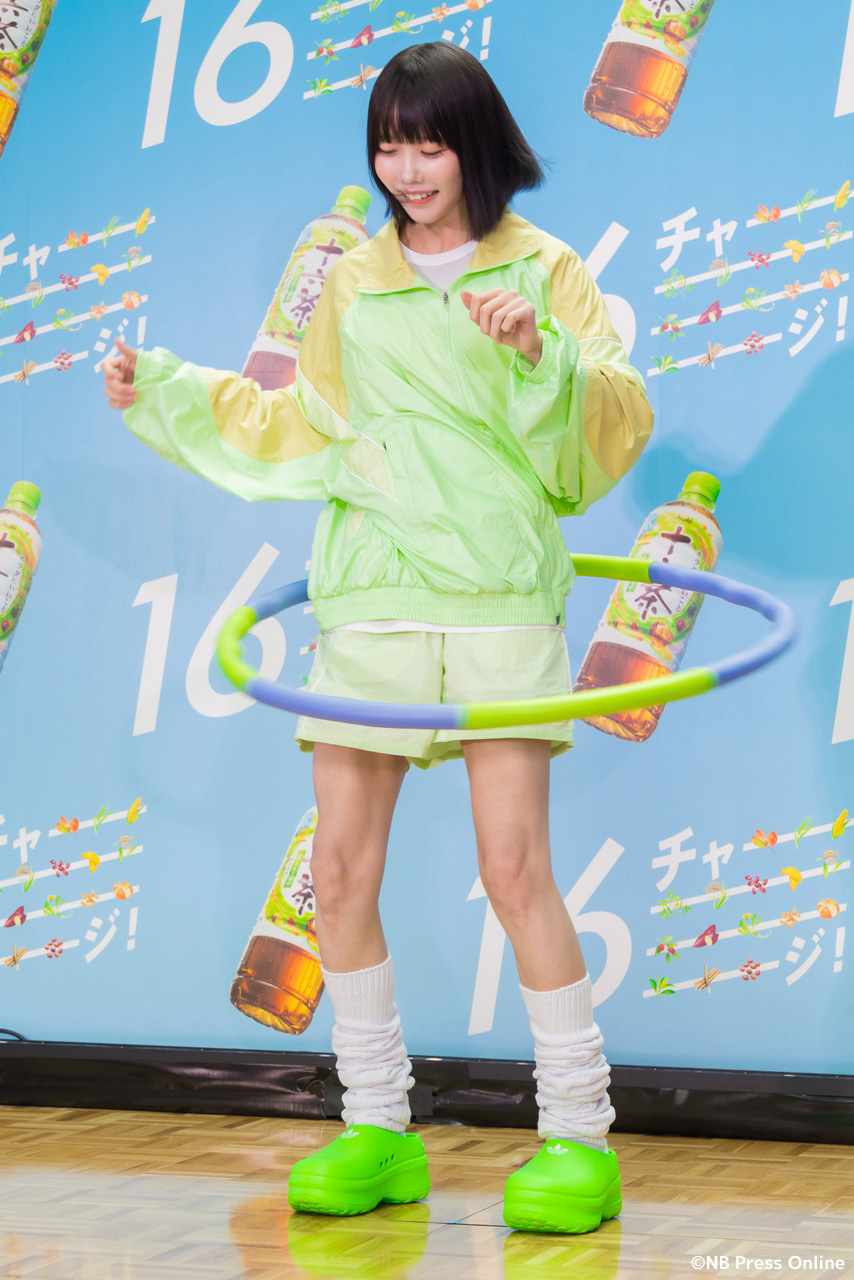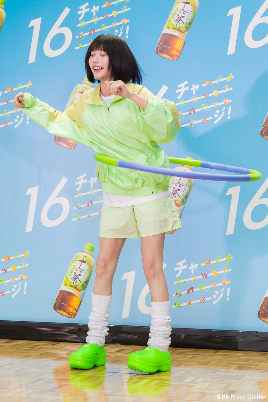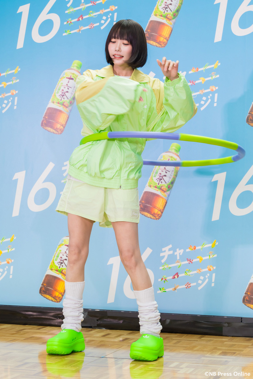 賞品の『アサヒ 十六茶』を受け取り、すぐさま口にすると「フラフープが結構疲れたのでまだ息が切れちゃってますが(笑)、その後に飲む十六茶はめちゃくちゃおいしいです。すっきりします。汗もかいちゃってるので、一段とおいしく感じます」と笑顔を見せていた。