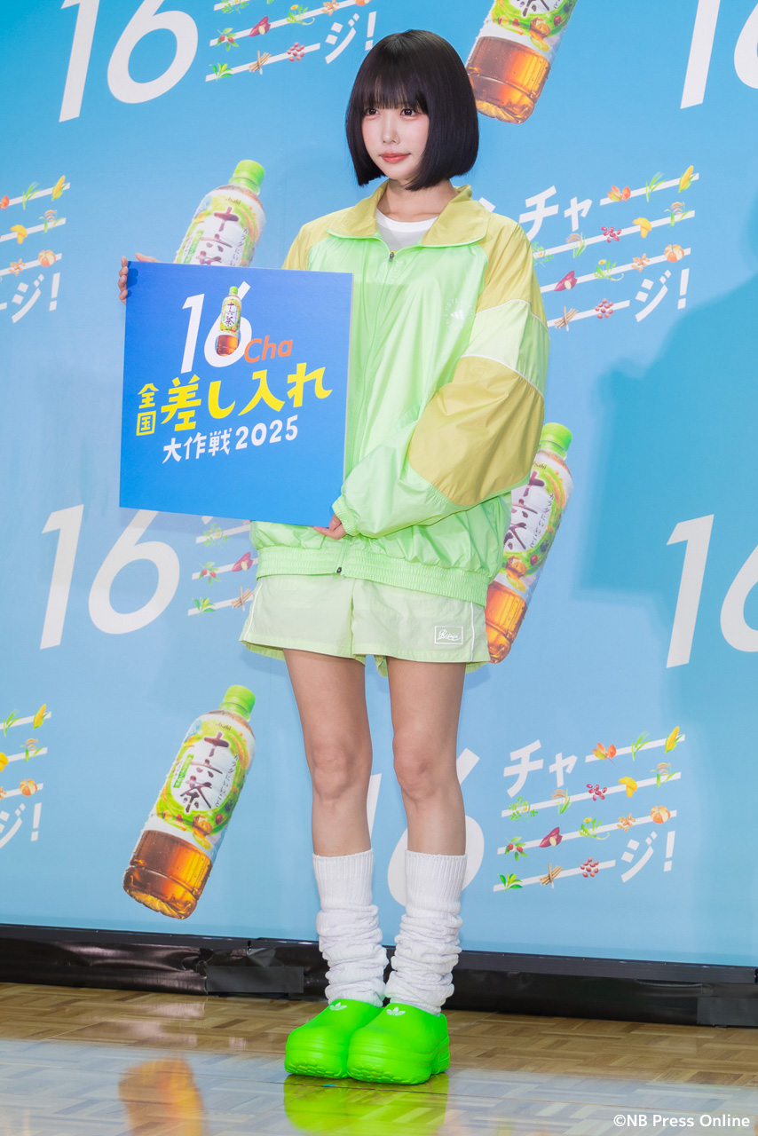 『アサヒ 十六茶』を差入れてほしいタイミングにも「フェス」をあげ、「これからフェスが続きます。出番前にグビグビといっぱい飲みたいので、たくさん置いといてほしいです。それに、フェスにはいろいろなアーティストさんが出るので、みんなが飲めるようにたくさんあったら、絶対に飲まれると思います」と願いを口にした。