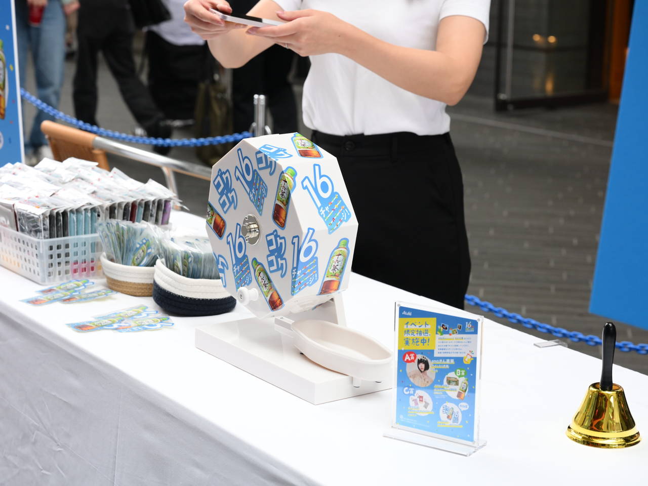 さらに、イベントの様子を『アサヒ 十六茶』と一緒に撮影していただき、Xアカウントにて指定のハッシュタグをつけて投稿すると、ガラポンを回す抽選にも参加できる。