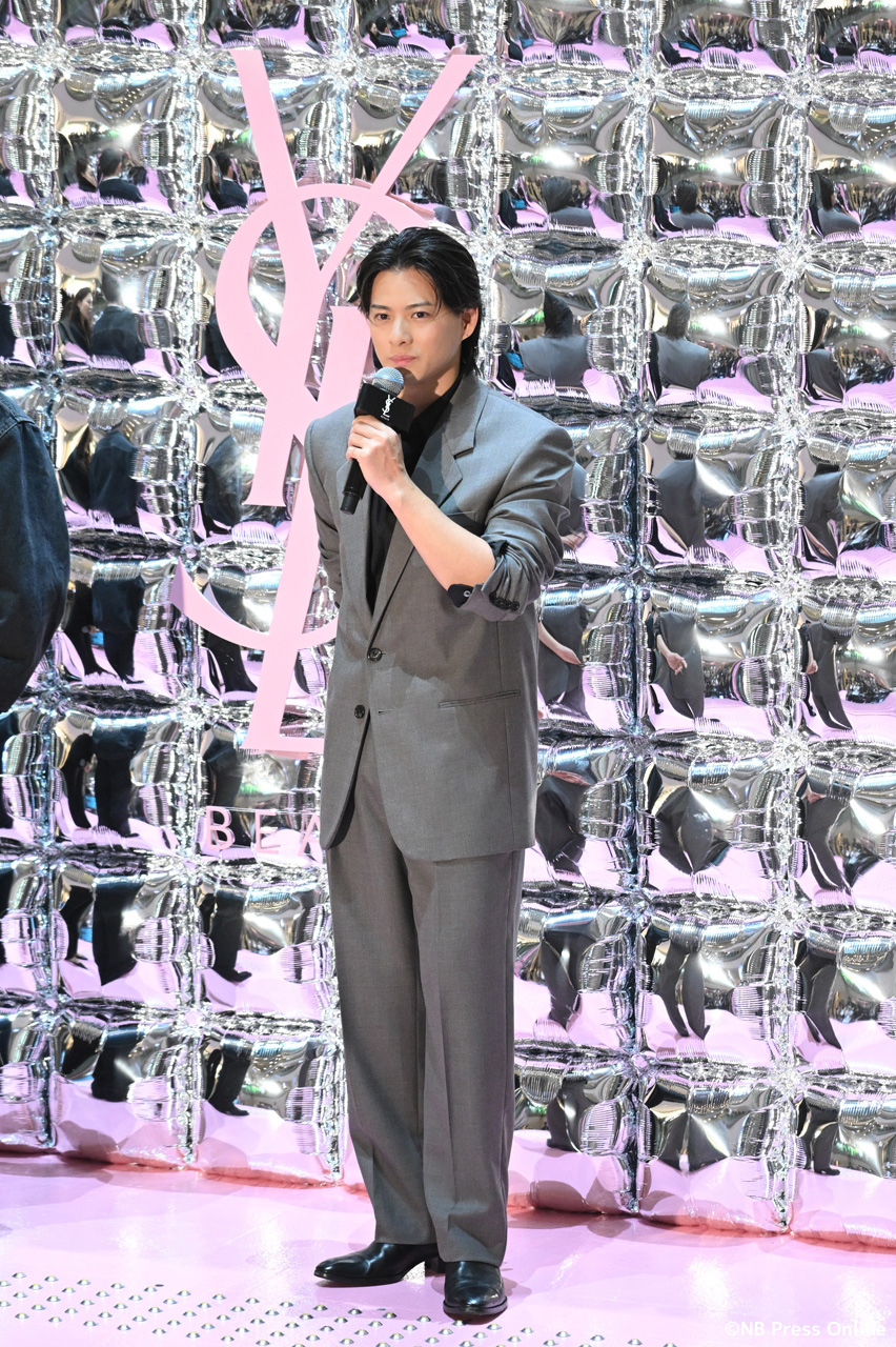 また、ファンやブランドのファンに向けては、「サムさんにチークを塗っていただいて、また新しい自分を発見したように、皆さんもまたこのメイクアップで素敵な自分に出会えることを僕も楽しみにしています」とコメント。さらに、「僕もこれから、皆さんにまだ見せたことのない、自分の顔を見せれるなと、このYSLビューティと共に思ってますので、ぜひ楽しみに」と、今後の活動への期待も高めた。