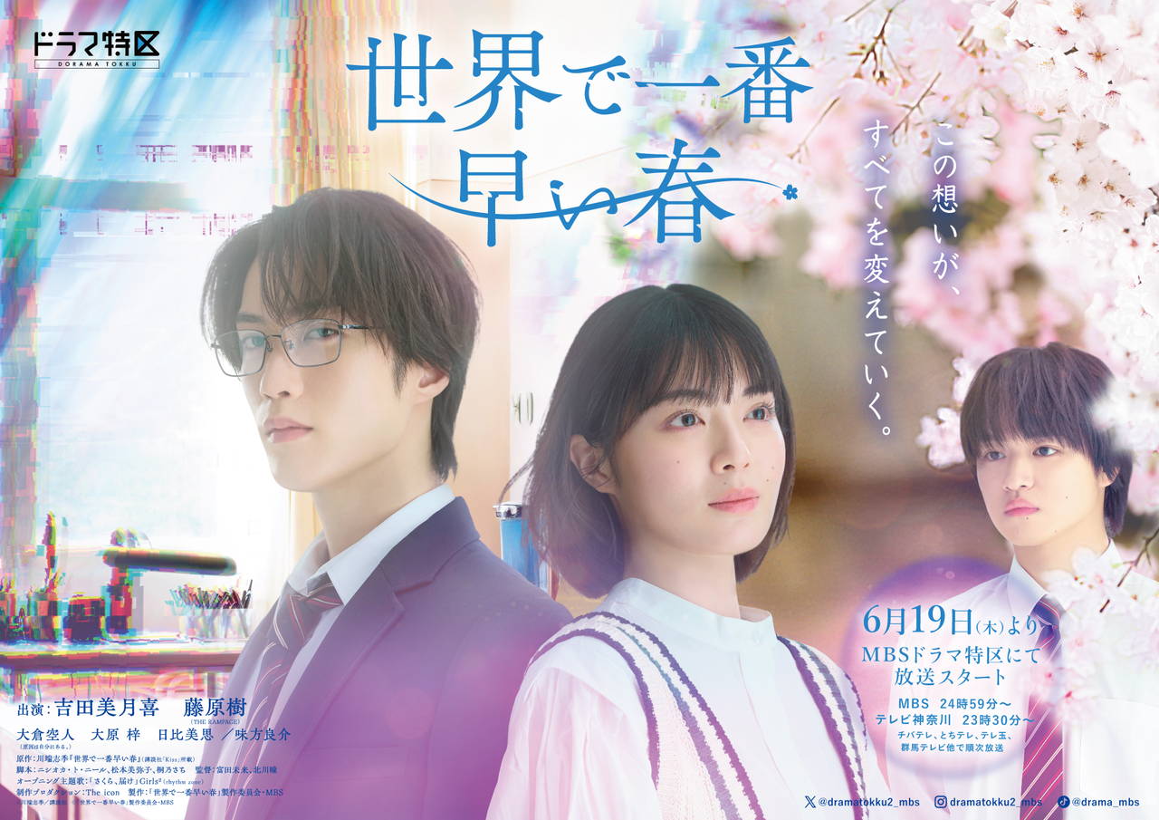 講談社「Kiss」にて連載され、Palcy等でも人気を 集めている漫画『世界で一番早い春』(川端志季)を基に、吉田美月喜と藤原樹(THE RAMPAGE)のW主演で実写化が決定しました!