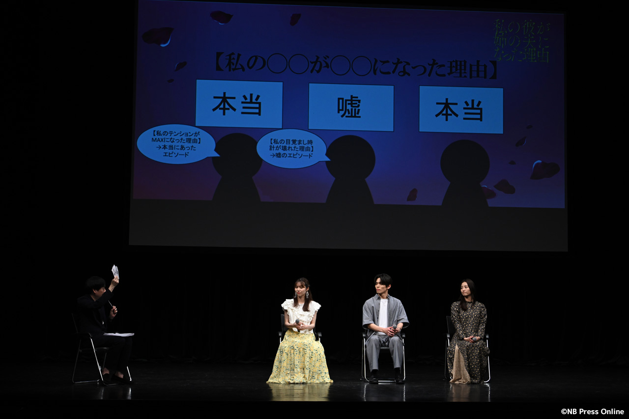 そして、イベントでは本作のタイトルにちなみ、「私の◯◯が◯◯になった理由」というお題でそのエピソードをそれぞれに話してもらい、嘘のエピソードを話している1人を観客に当ててもらうという企画『私の◯◯が◯◯になった理由!嘘?本当?見抜けるか対決~!!』が行われる一幕も。
