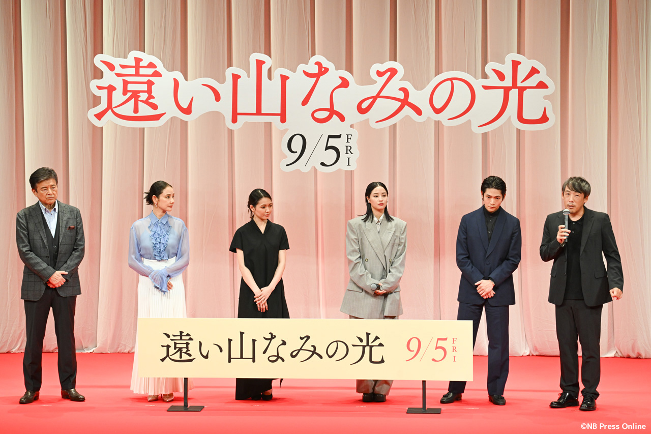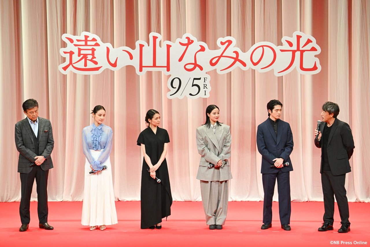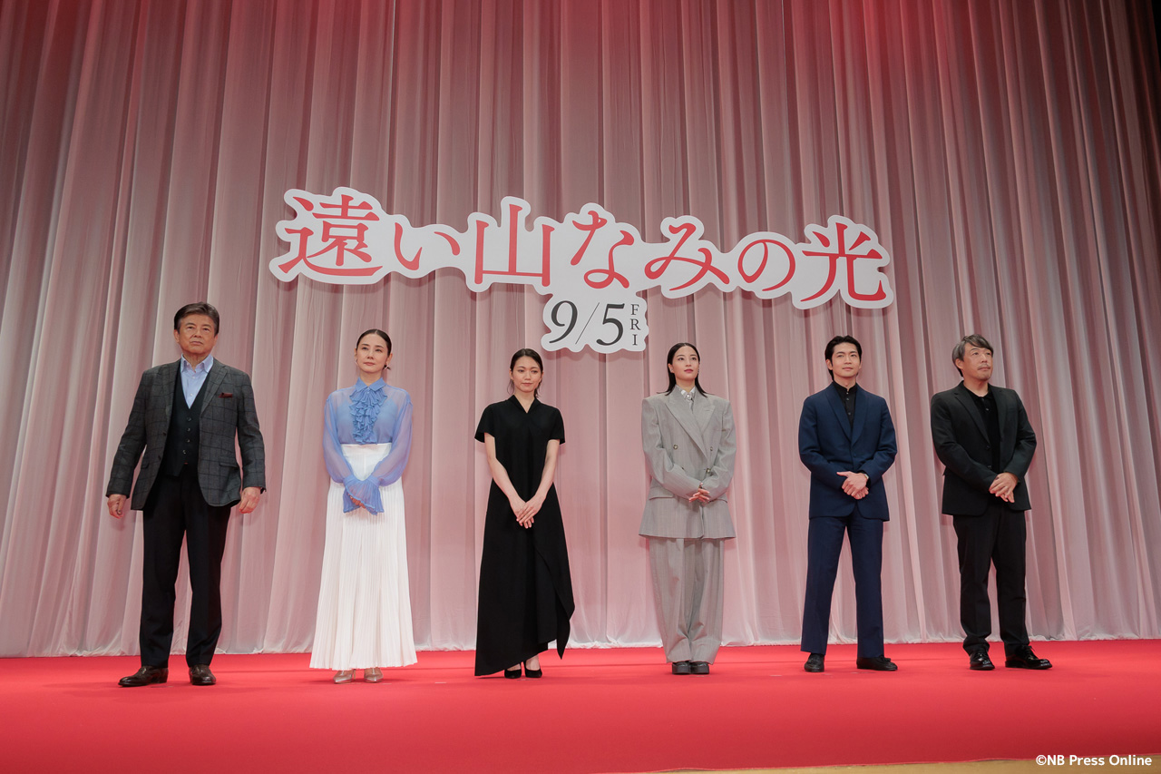 2025年8月7日、東京都千代田区のイイノホールにて、映画『遠い山なみの光』の完成披露舞台挨拶が開催され、広瀬すず(悦子 役)、二階堂ふみ(佐知子 役)、吉田羊(1980年代の悦子 役)、松下洸平(悦子の夫・二郎 役)、三浦友和(二郎の父・緒方 役)、そして石川慶監督が登壇し、作品への深い想いや撮影秘話が語られた。(動画&フォト)
