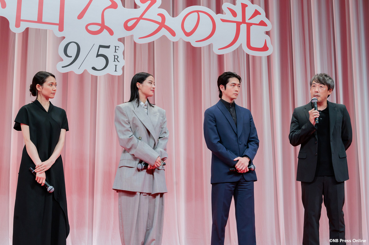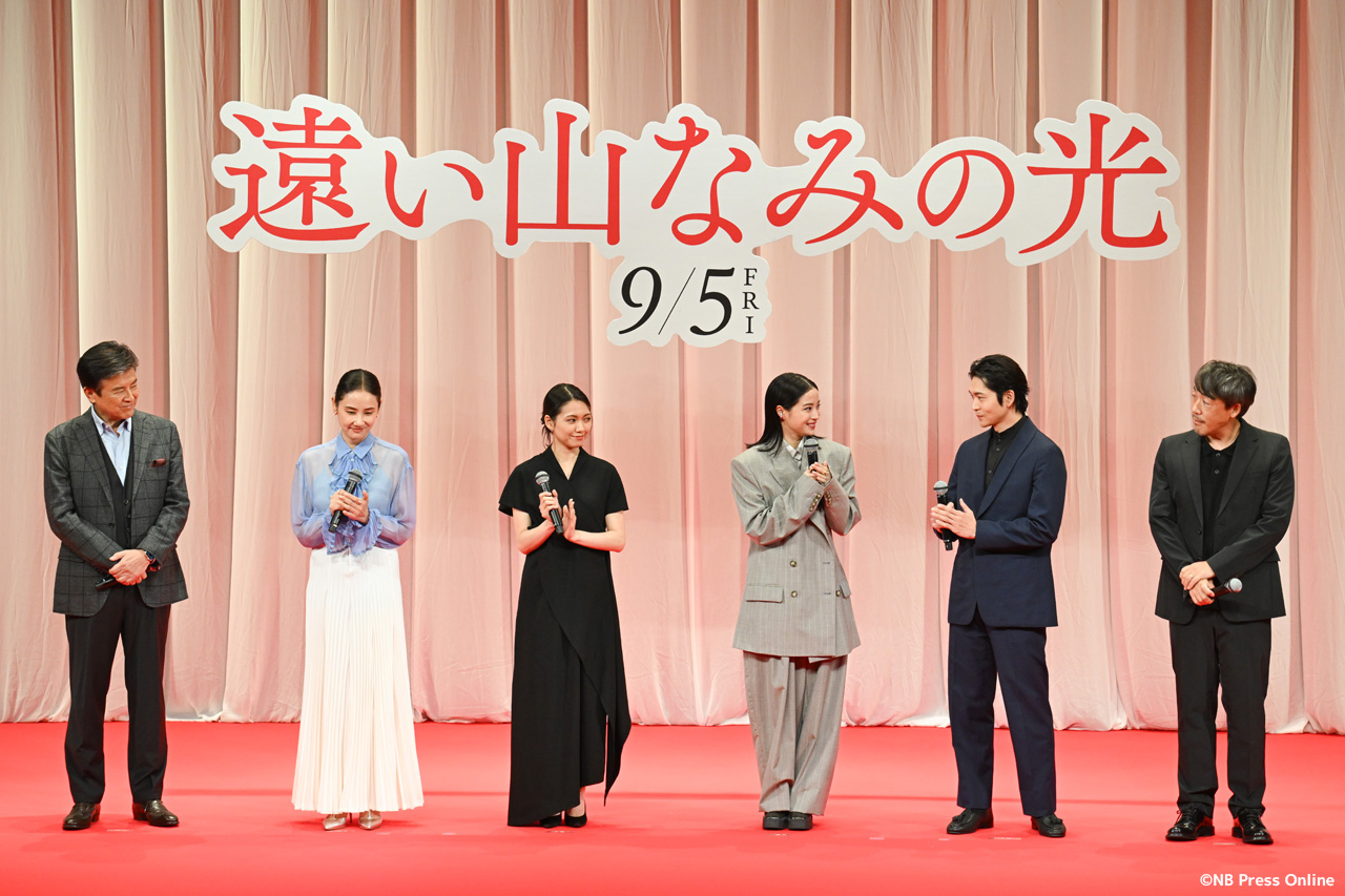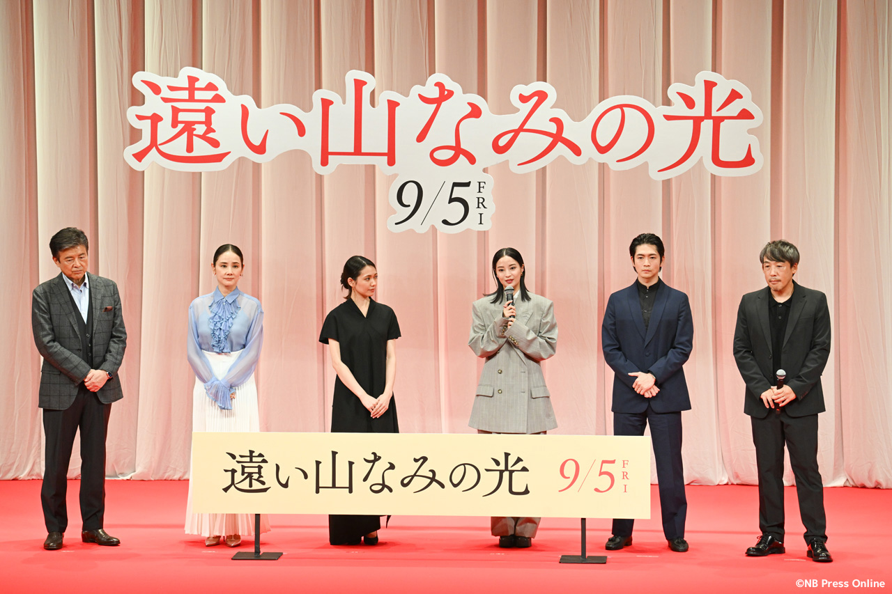 2025年8月7日、東京都千代田区のイイノホールにて、映画『遠い山なみの光』の完成披露舞台挨拶が開催され、広瀬すず(悦子 役)、二階堂ふみ(佐知子 役)、吉田羊(1980年代の悦子 役)、松下洸平(悦子の夫・二郎 役)、三浦友和(二郎の父・緒方 役)、そして石川慶監督が登壇し、作品への深い想いや撮影秘話が語られた。(動画&フォト)