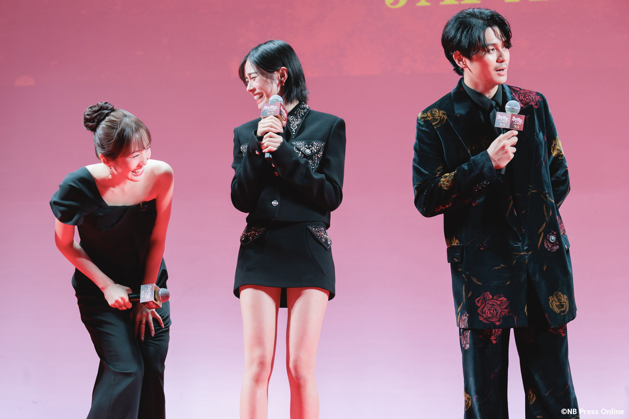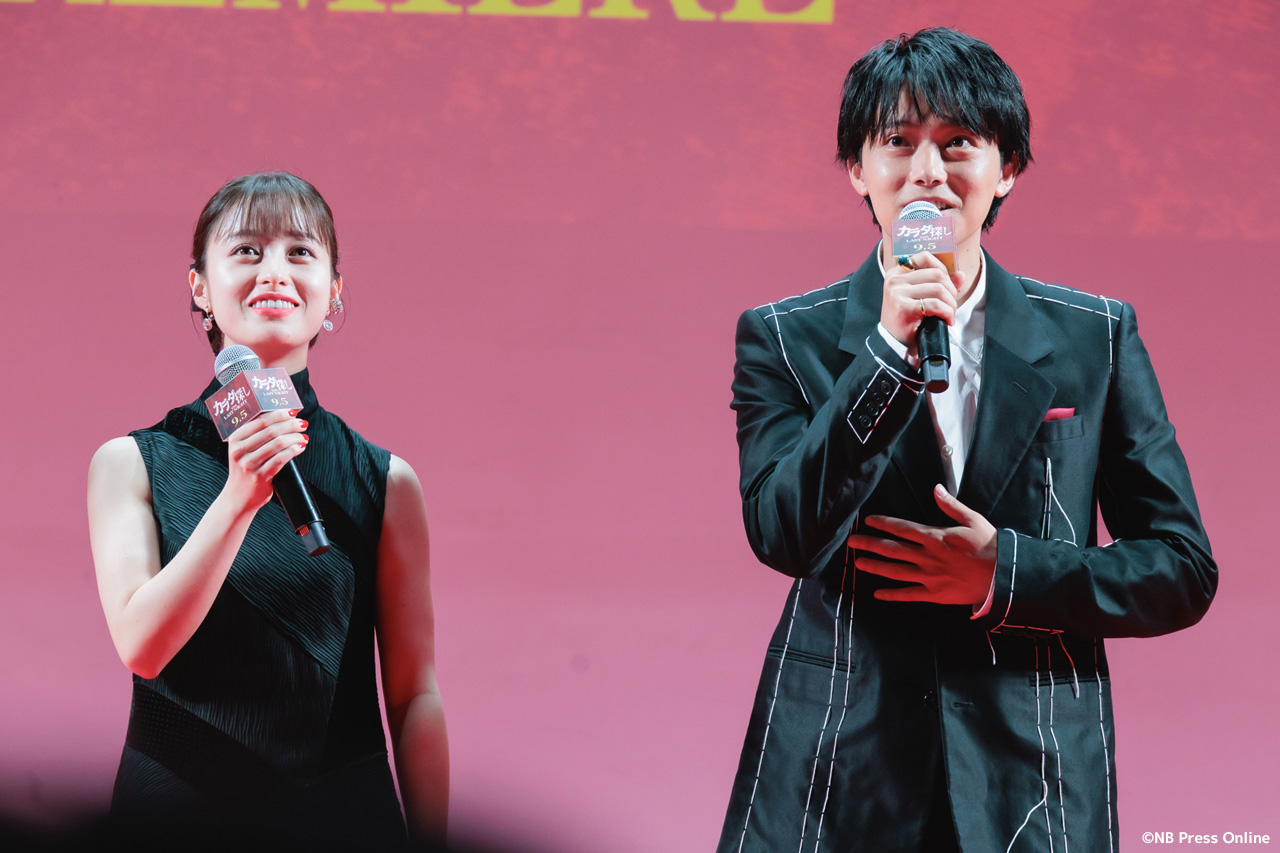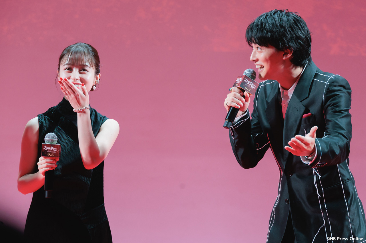 これを受けた本田は、実は自身が橋本の大ファンだと切り出し「個人的に環奈さんすごく好きで、写真集も買っているんですね。でも本当に人見知りで今日、目も合わせられなくて…環奈さんが後ろを向いているときに、耳の形まで綺麗だなと思って見ちゃいました」と明かすと、橋本は「全然知らなかった…、耳の形まで見られてたんですね!?うわー、どうしよう恥ずかしい!でも嬉しいです!!」と驚きながらも喜びの表情を見せ、そのほほえましいやり取りに会場も温かな笑いで溢れていった。