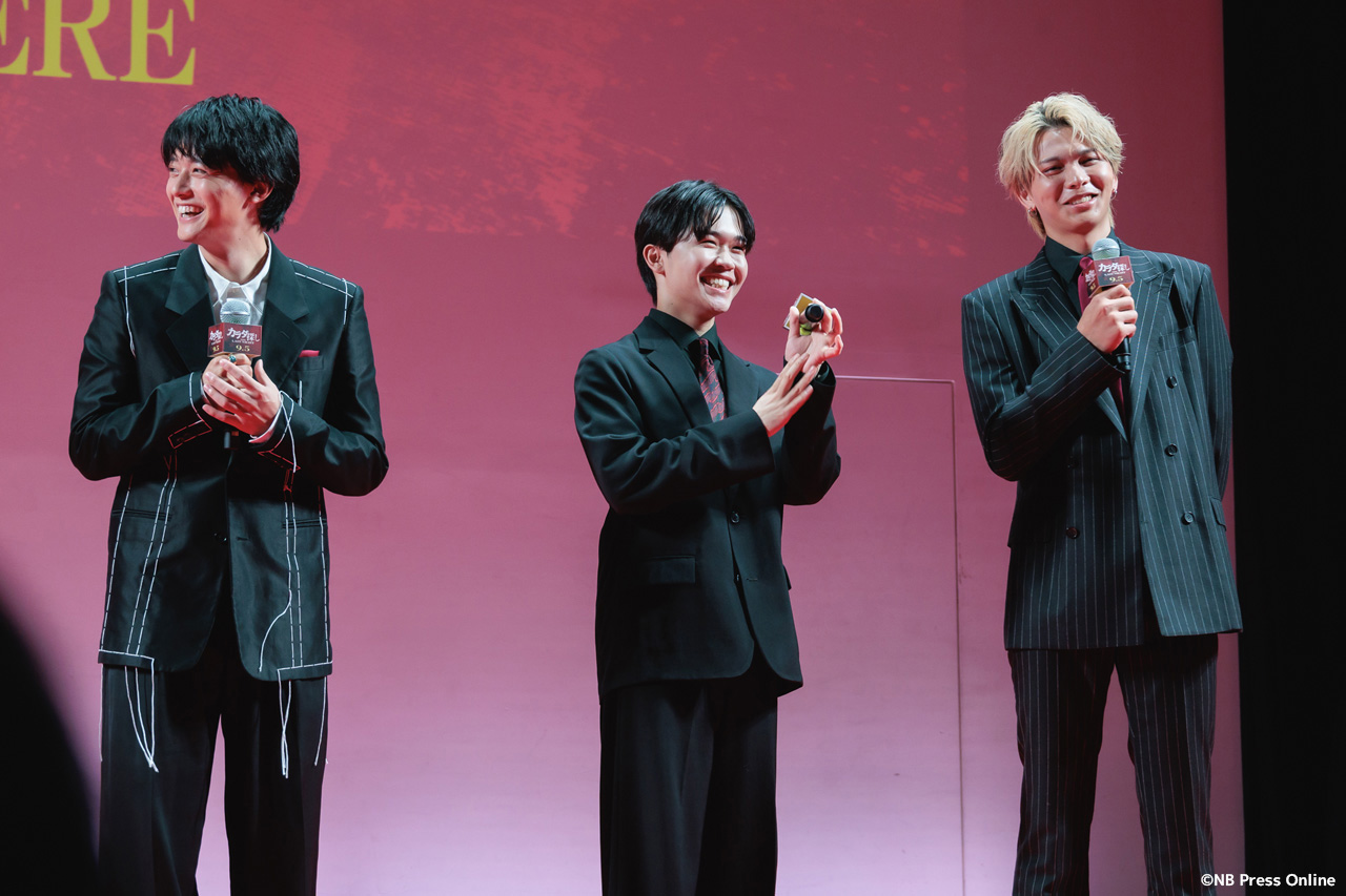 眞栄田の「友達」との回答にも会場は興味津々の雰囲気に。眞栄田は先ほどの新キャスト5人のトークを受け「探してます。募集中!ここの5人がこんなに早く仲良くなっているのすごいですよね。みんなあだ名つけているじゃないですか。僕のことは“郷敦さん”ですよ!」と冗談交じりに新キャストにアピールすると、橋本が「みんな、“どんちゃん”とか呼んだ方が良かったんじゃない?」と声を掛け、鈴木が「え!?(あだ名で)呼んでいいんですか!?」と嬉しそうに食いついていくなどまたしてもテンポ良くトークが弾んだ。