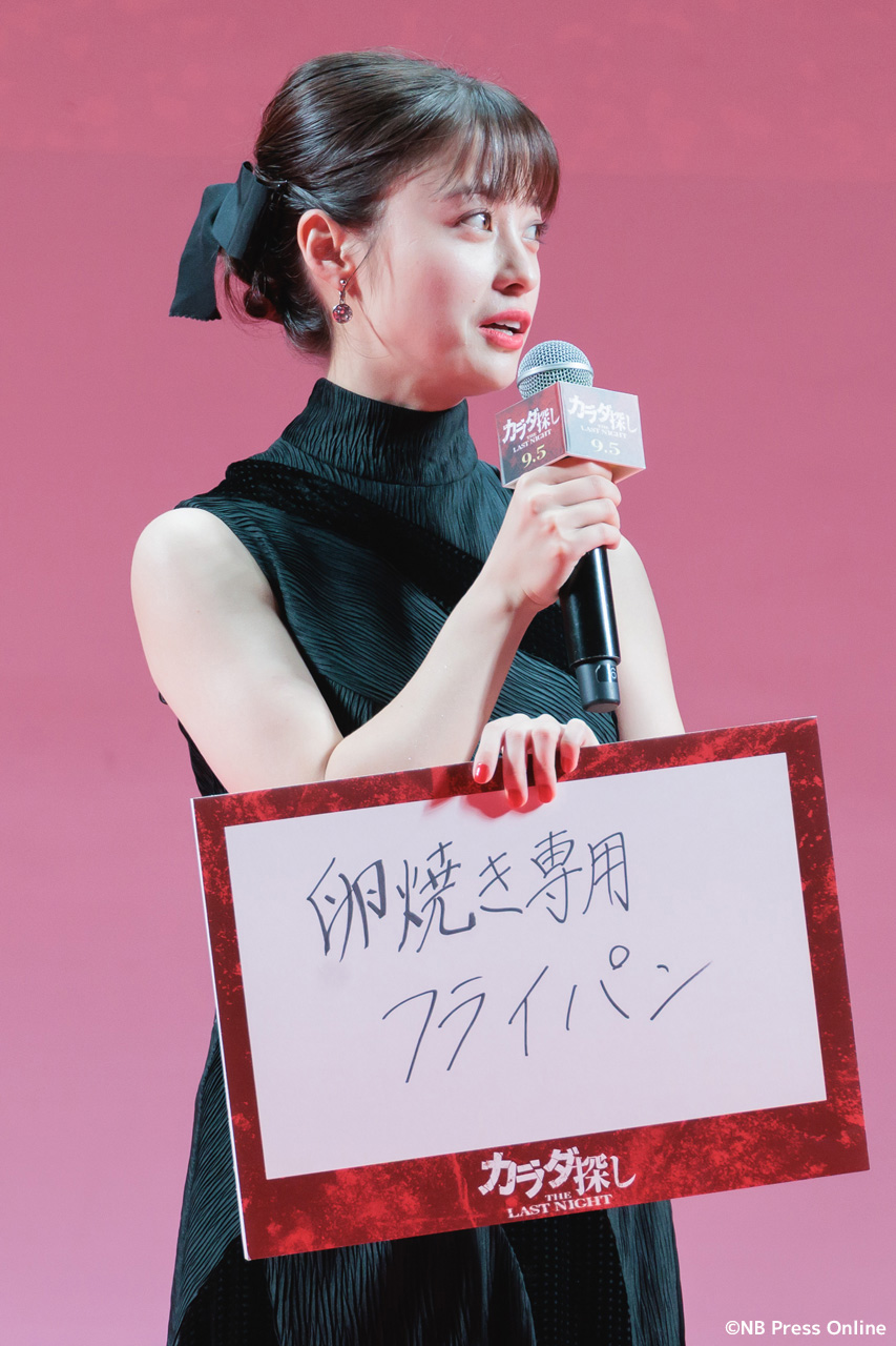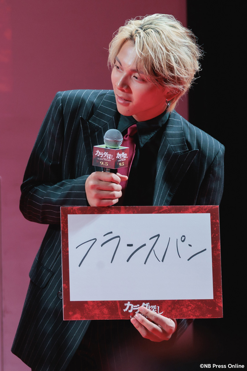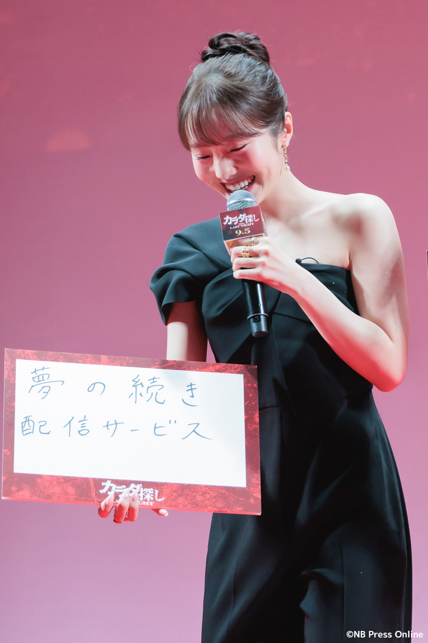 多くの貴重なエピソードで盛り上がる中、続いてのコーナーでは劇中の“赤い人”のセリフ「私のカラダ探して…」にちなみ、「いま“探して”いるもの」、もしくは「最近まで“探して”いて、ついに見つけたもの」をそれぞれフリップに書いて発表。