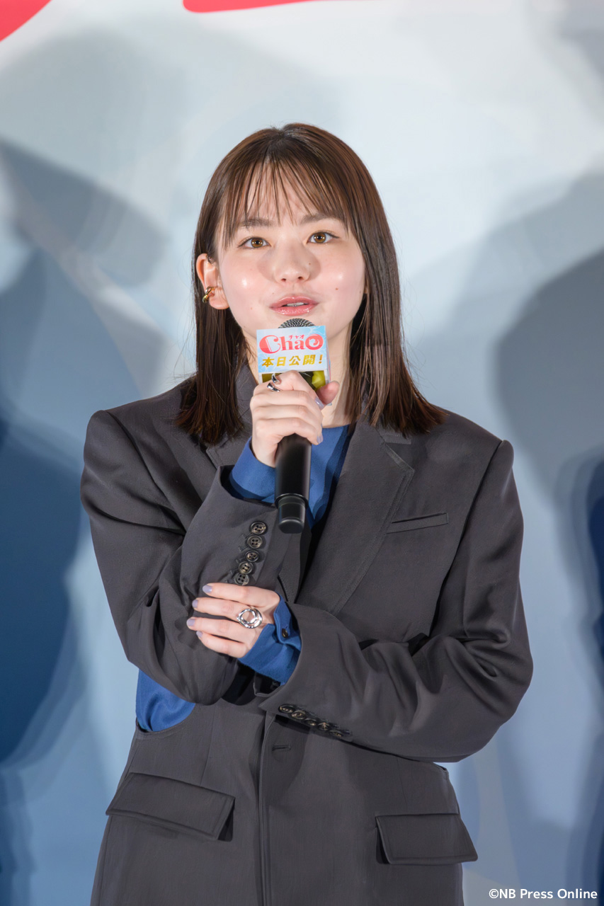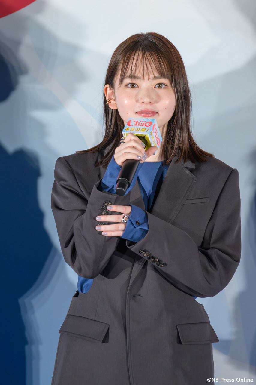 「途中、飛行船から音楽が流れてくるシーンがあると思うんですが、その歌を歌っているのは自分でして…」と告白する鈴鹿。「今まで歌を歌うことを避けてきたので、歌を歌うような機会はあまりなかったんですが、本編の中で(自分の歌が使われるのは)間奏を含めて40秒くらいというお話で」と当時を明かし、「ボイトレの先生と(歌を)練習して、当日収録を終えると“今度はフルで(歌唱を)お願いします”と言われて。“これが芸能界か…”と思いました」と素直すぎる心境を明かすと、会場からは笑い声が。
