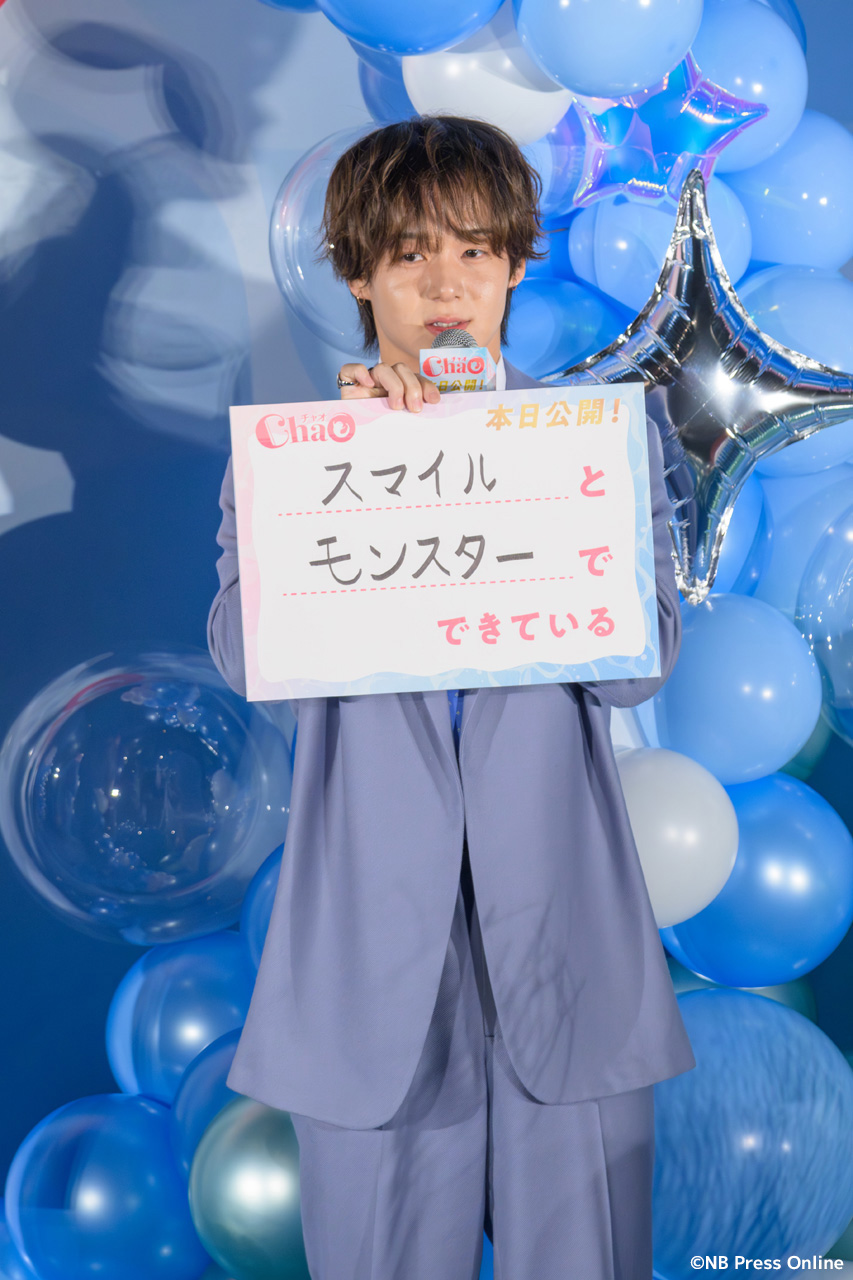 太田は「僕は普段、(アーティスト活動で)歌って踊っているんですが、その時に“福岡のスマイルモンスター、太田駿静です”と自己紹介させていただいているんです」と説明し、「普段はスマイル多めの僕なんですが、ライブやパフォーマンスになると“モンスター”だぞ、と。ギャップの部分を表現してみました」と理由を明かすと、ファンからは納得の拍手が沸き起こっていた。