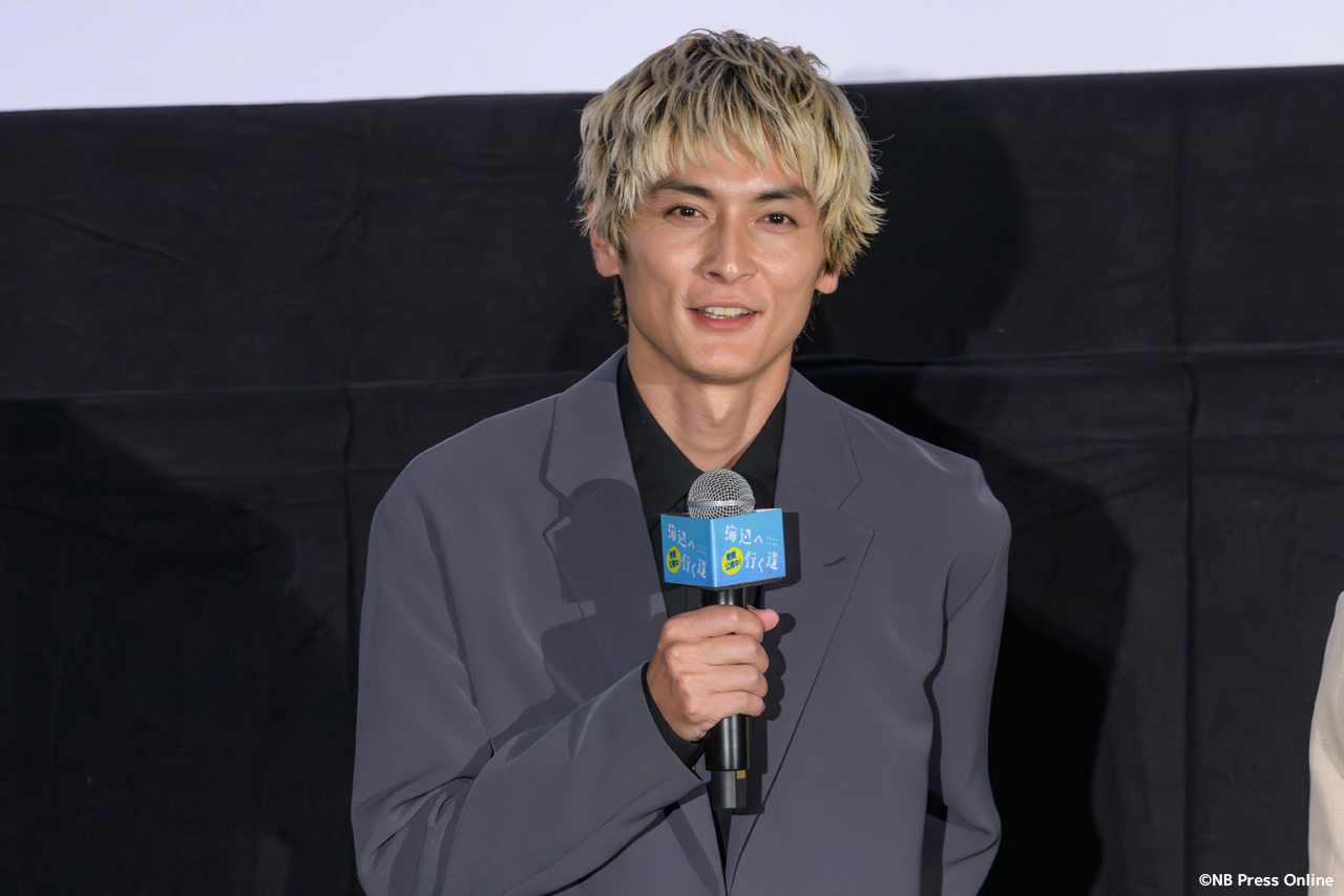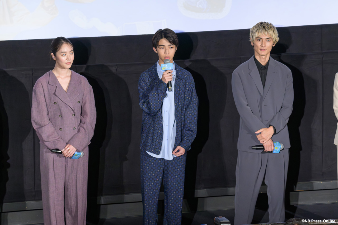 奏介の美術部の後輩・立花役の中須翔真は、暑い中来場した観客に感謝し、「この映画は共演者の方々と一緒に頑張って撮った、自分にとっても思い出に残る映画」と作品への思いを語った。