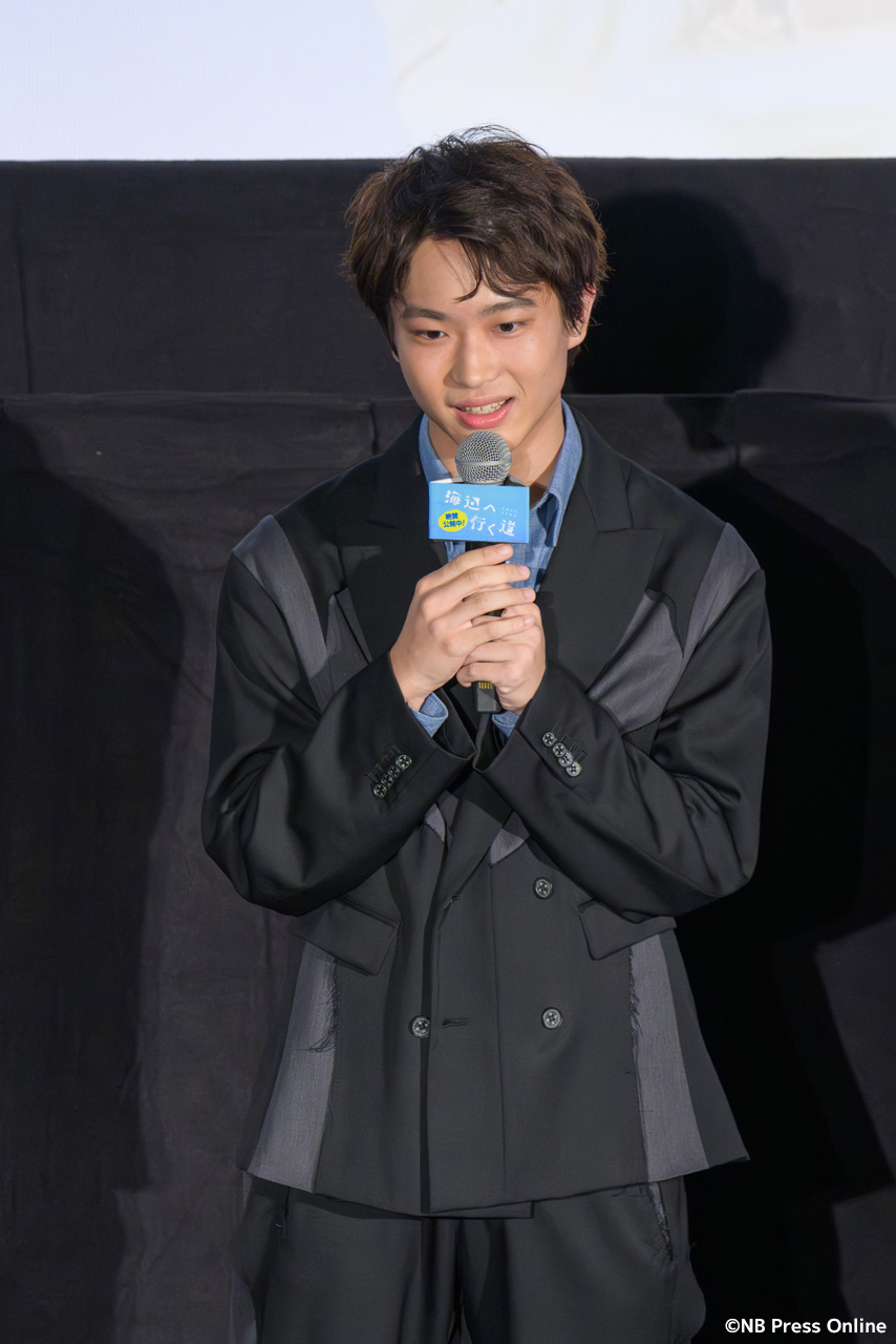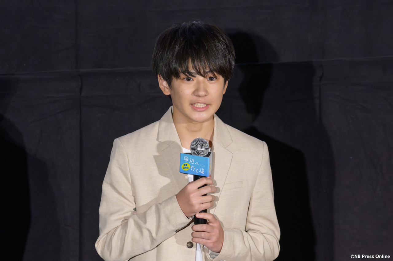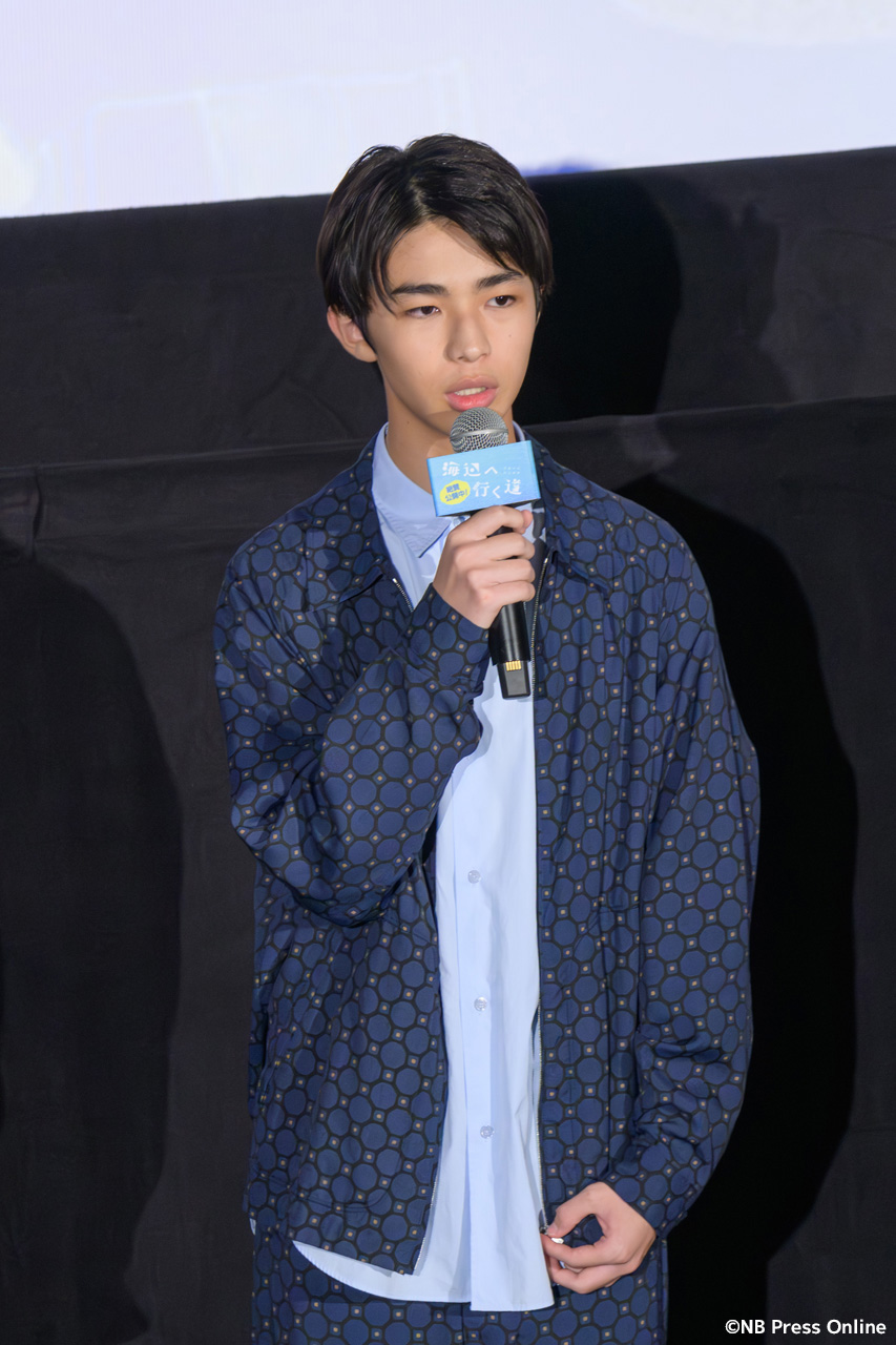 原田琥之佑は、「改めて今日は来ていただきありがとうございました。この作品の魅力は、子供たちよりも大人たちの方がはしゃいでいるという対比、そして何よりも小豆島の綺麗なロケーションがあっての『海辺へ行く道』だと思っている」と述べた。
