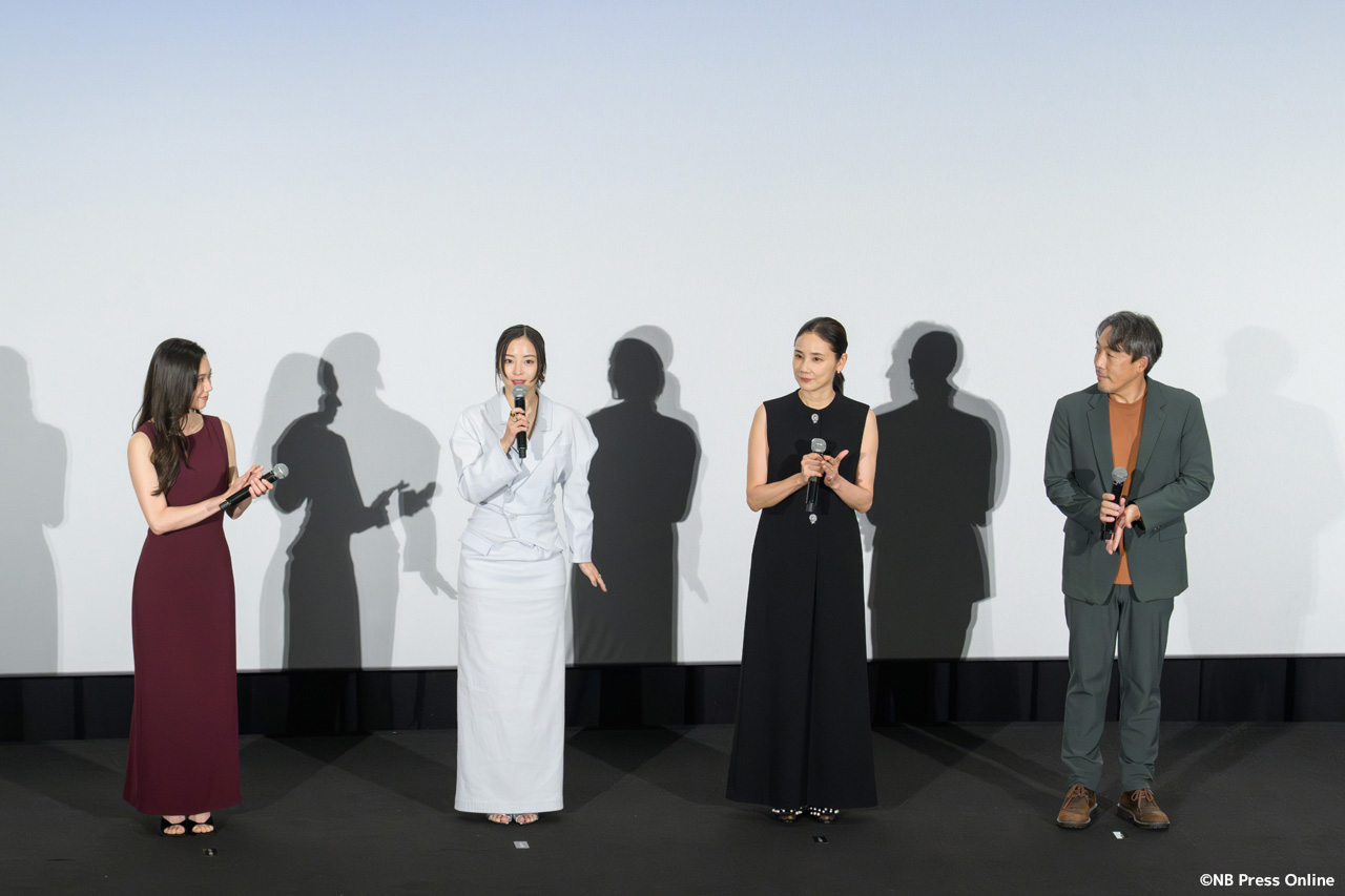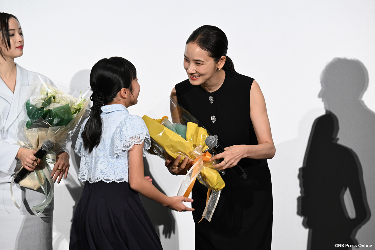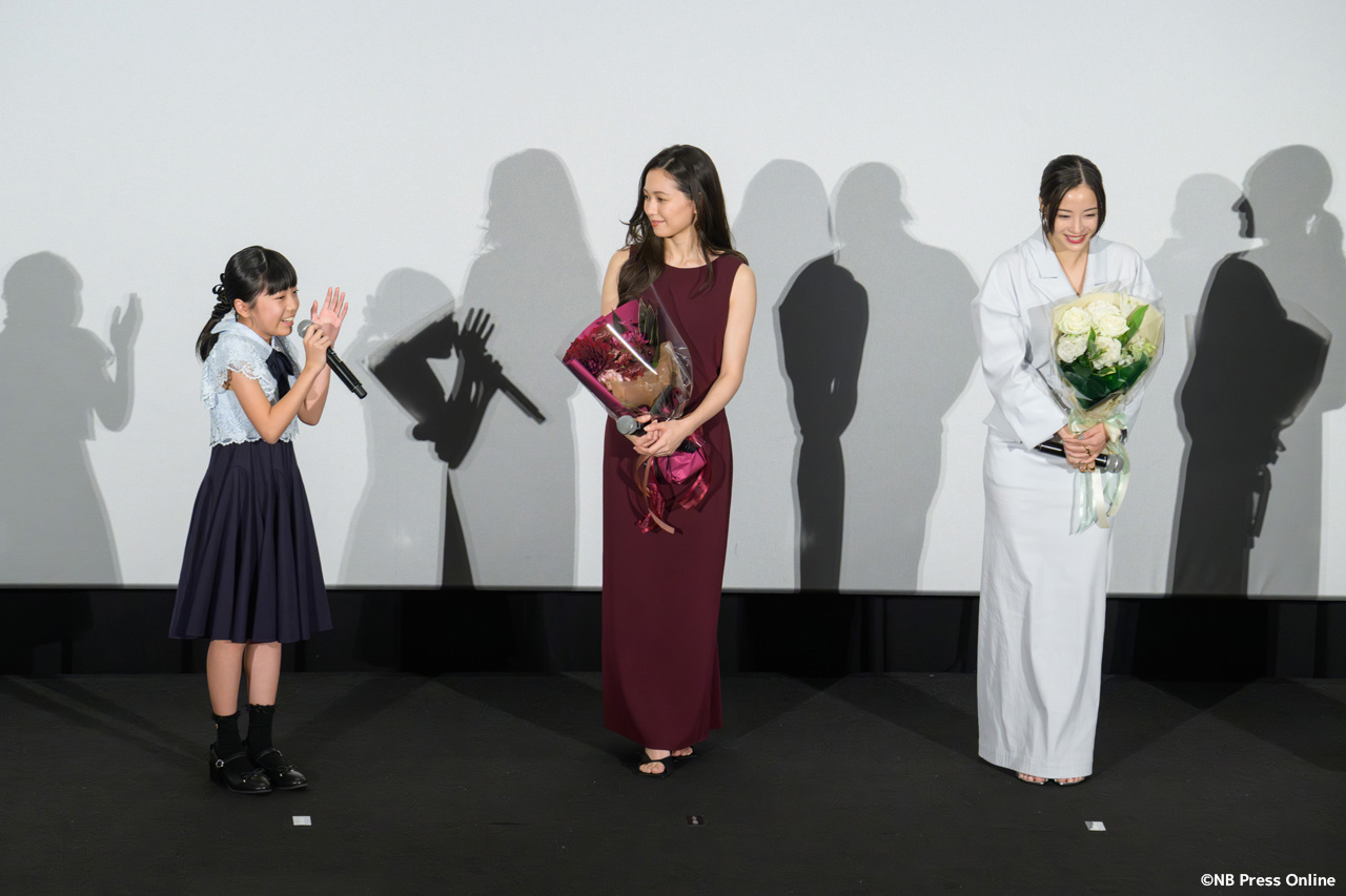 舞台挨拶の終盤では、二階堂演じる佐知子の娘役を演じた鈴木碧桜(みお)か登場して、4人に花束を贈呈する一幕もあり、広瀬と共演した感想を求められると「本当に演技がお上手で、撮影で一緒に共演したときは、早く広瀬さんみたいに演技が上手くならないかなってずっと思っていました」と胸の内を明かし、広瀬は「また共演できたらうれしいですね」と優しく声をかけた。