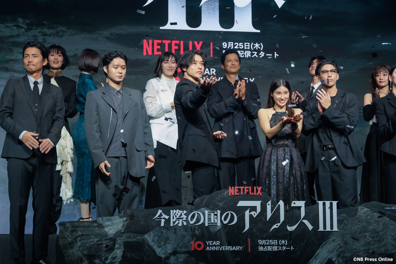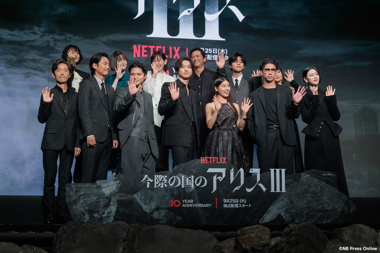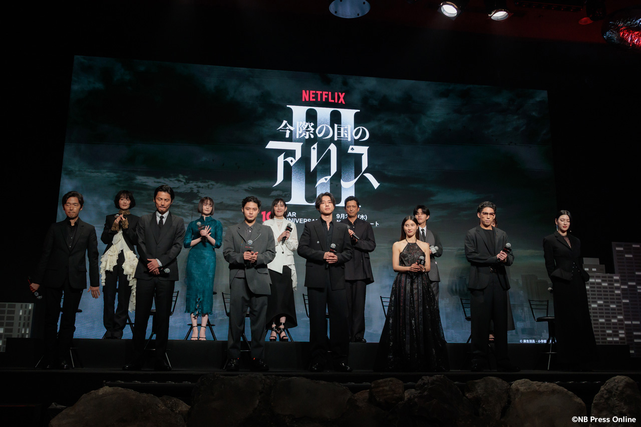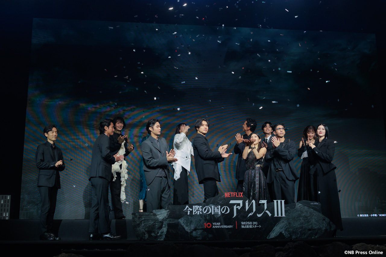 2025年9月11日、ベルサール渋谷にて、Netflixシリーズ「今際の国のアリス」シーズン3 グローバルファンイベントが行われ、山﨑賢人、土屋太鳳、磯村勇斗、三吉彩花、毎熊克哉、須藤理彩、池内博之、玉城ティナ、醍醐虎汰朗、玄理、吉柳咲良、賀来賢人、佐藤信介監督が登壇。(動画&フォト)