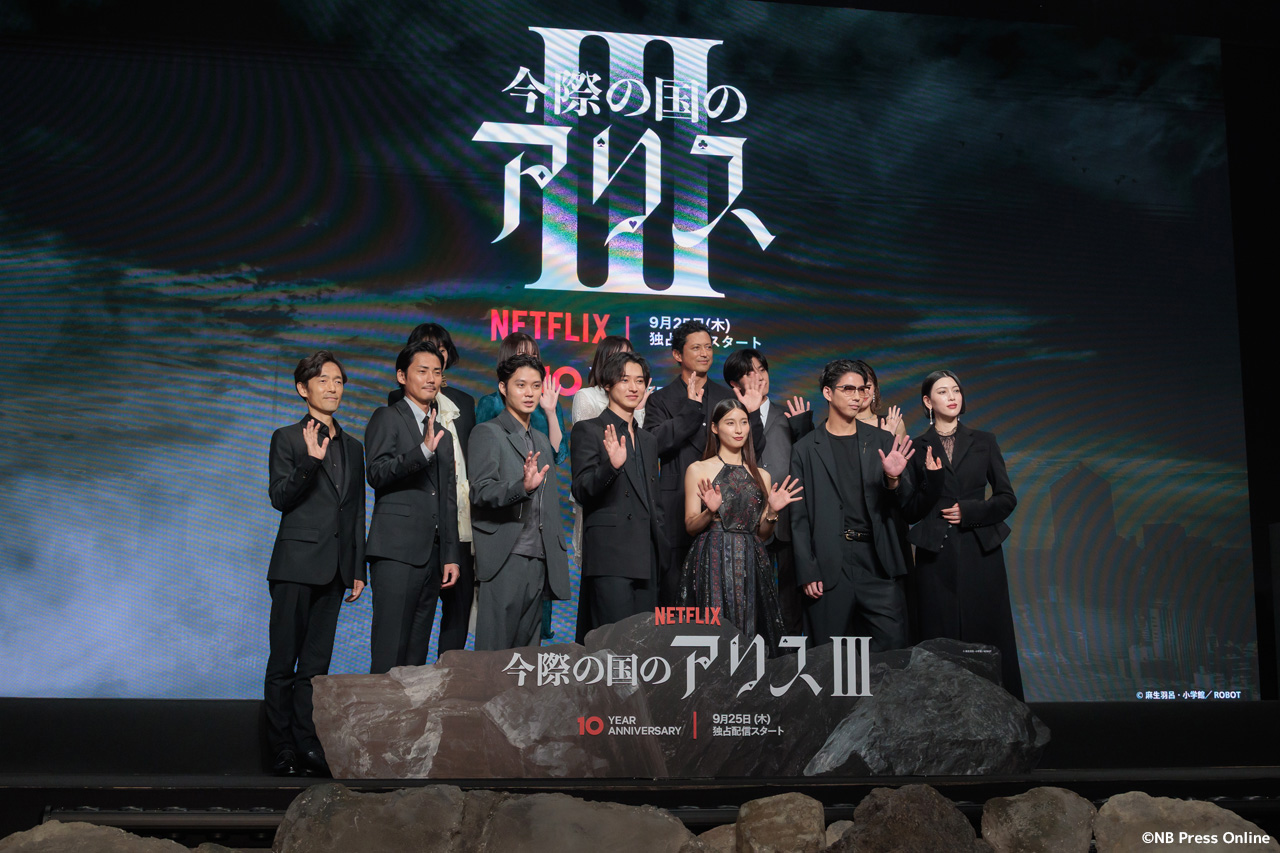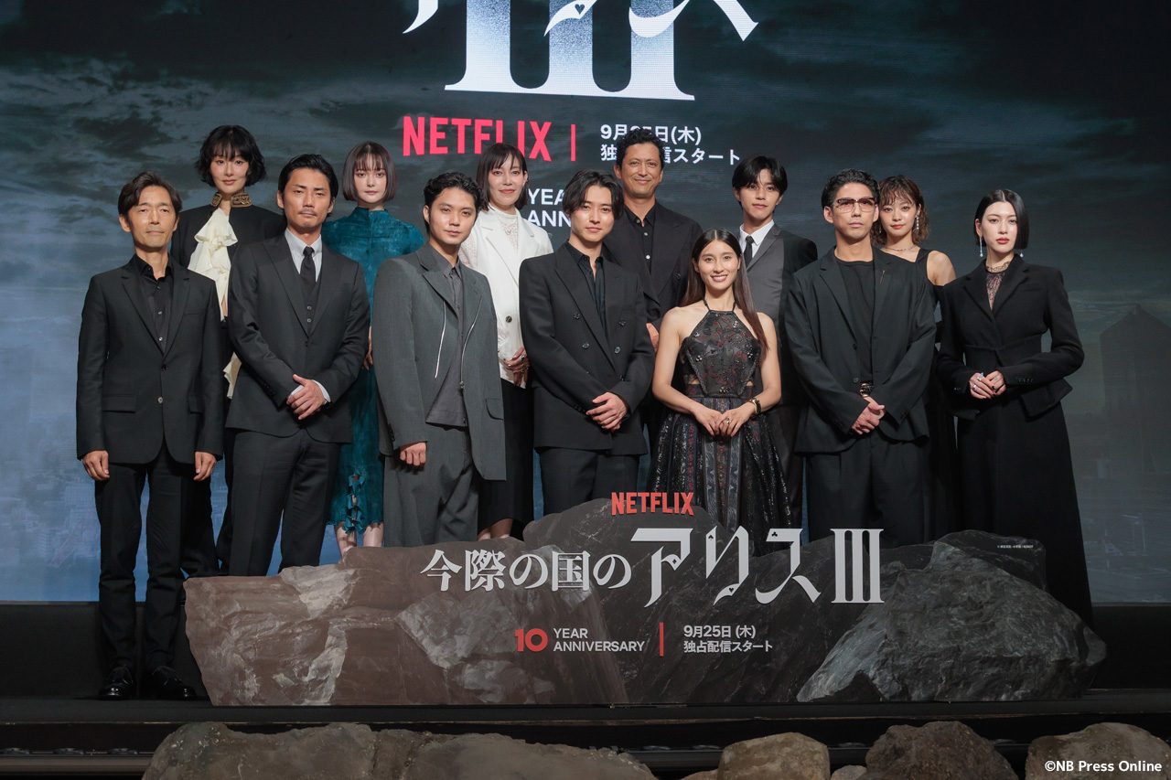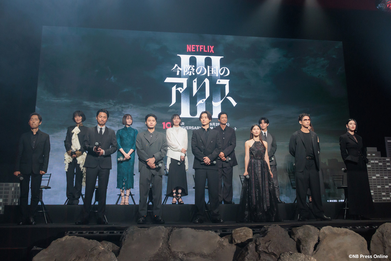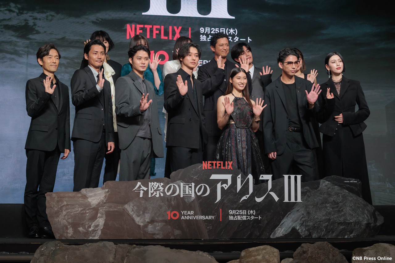 2025年9月11日、ベルサール渋谷にて、Netflixシリーズ「今際の国のアリス」シーズン3 グローバルファンイベントが行われ、山﨑賢人、土屋太鳳、磯村勇斗、三吉彩花、毎熊克哉、須藤理彩、池内博之、玉城ティナ、醍醐虎汰朗、玄理、吉柳咲良、賀来賢人、佐藤信介監督が登壇。(動画&フォト)