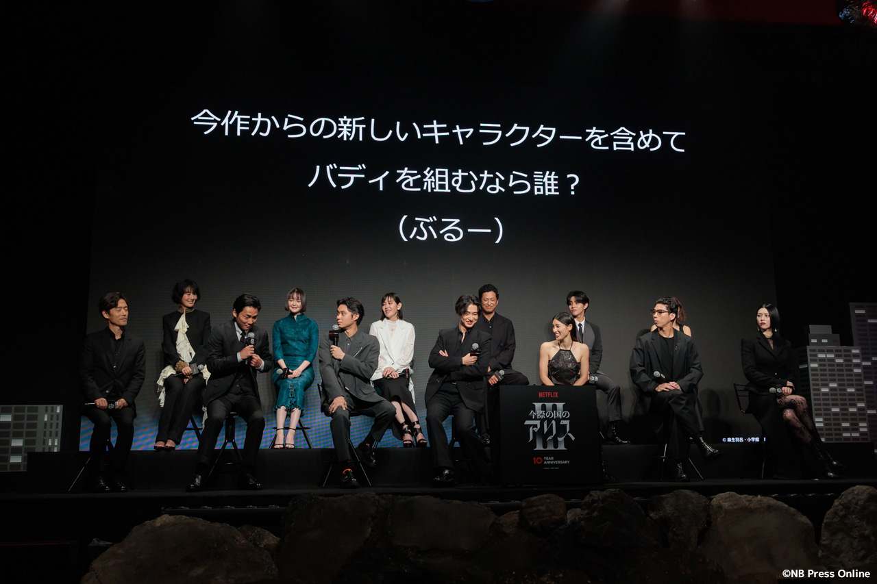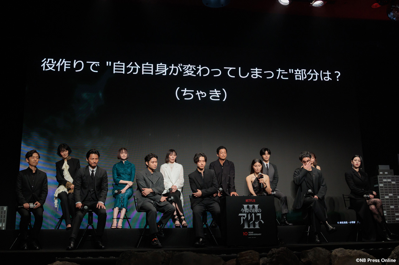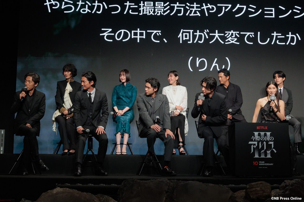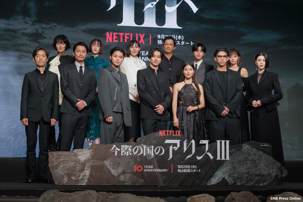2025年9月11日、ベルサール渋谷にて、Netflixシリーズ「今際の国のアリス」シーズン3 グローバルファンイベントが行われ、山﨑賢人、土屋太鳳、磯村勇斗、三吉彩花、毎熊克哉、須藤理彩、池内博之、玉城ティナ、醍醐虎汰朗、玄理、吉柳咲良、賀来賢人、佐藤信介監督が登壇。(動画&フォト)