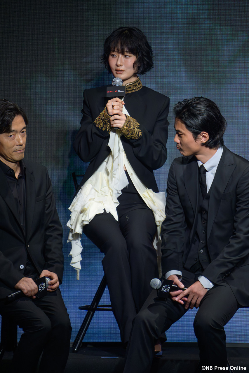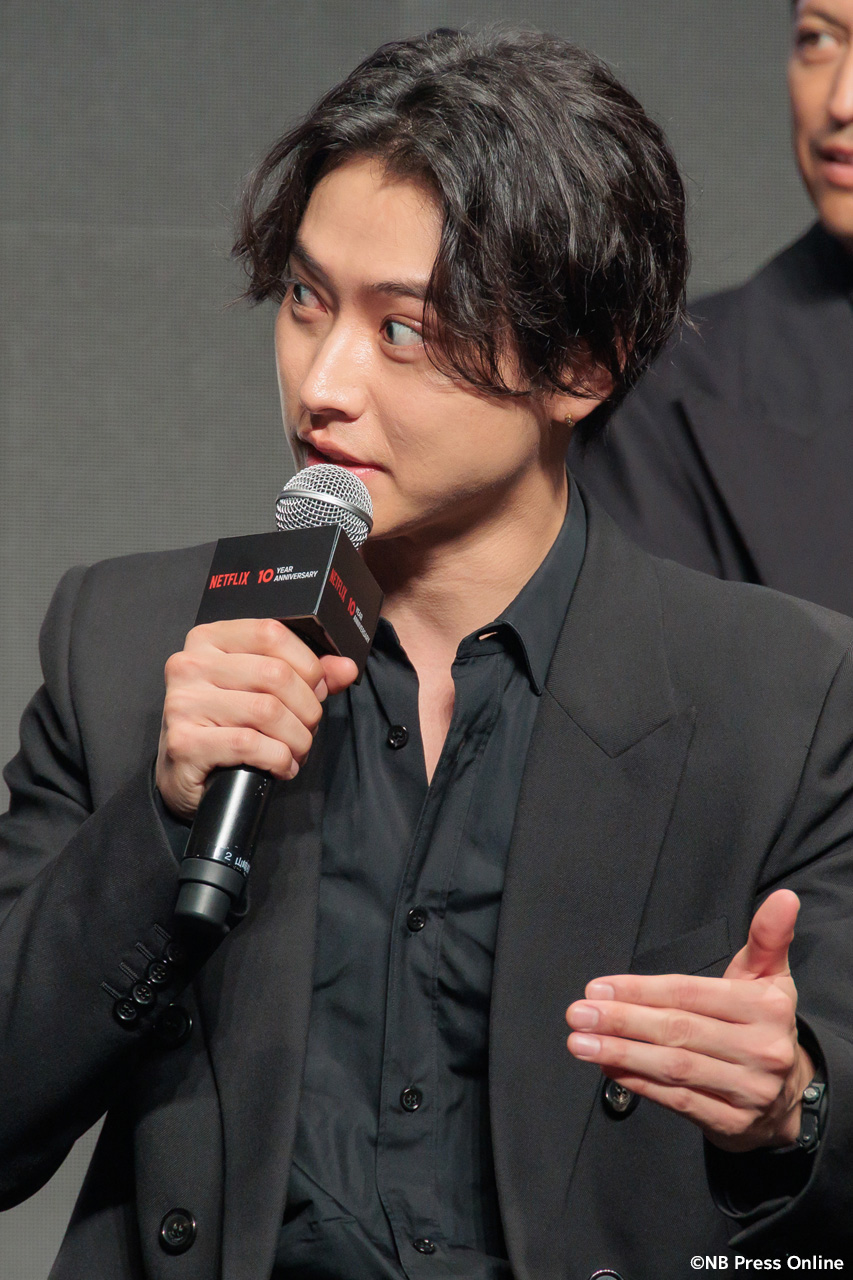 キーパーソンを担った賀来は「リュウジはミステリアスな人物で、本音なのか裏があるのか、緻密に計算しながら演じました」と語りつつ、「この作品では非常にフィジカルが大事で…あまり言えないんですが、アレがアレしてくるんです(笑)。シリーズ史上最高級のアレだと思います」とネタバレに慎重になりながらもユーモアを交えて会場を沸かせた。