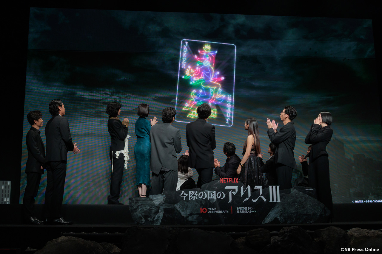 日本でのサービス開始10周年を迎えるNetflixアニバーサリー・イヤーと、大人気シリーズ待望の最新シーズン配信直前に相応しい豪華イベントは、会場全体に大量のトランプが降り注ぐ盛大なグランドフィナーレをもって幕を閉じた。“生きる”をテーマに世界へ強烈なメッセージを発信し続けるNetflixシリーズ「今際の国のアリス」。待望のシーズン3はいよいよ、9月25日(木)より配信開始!