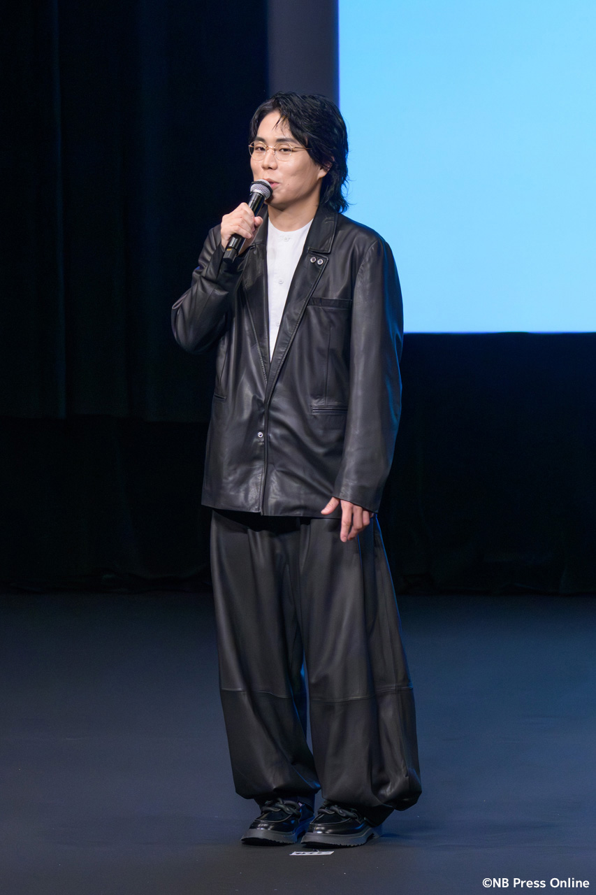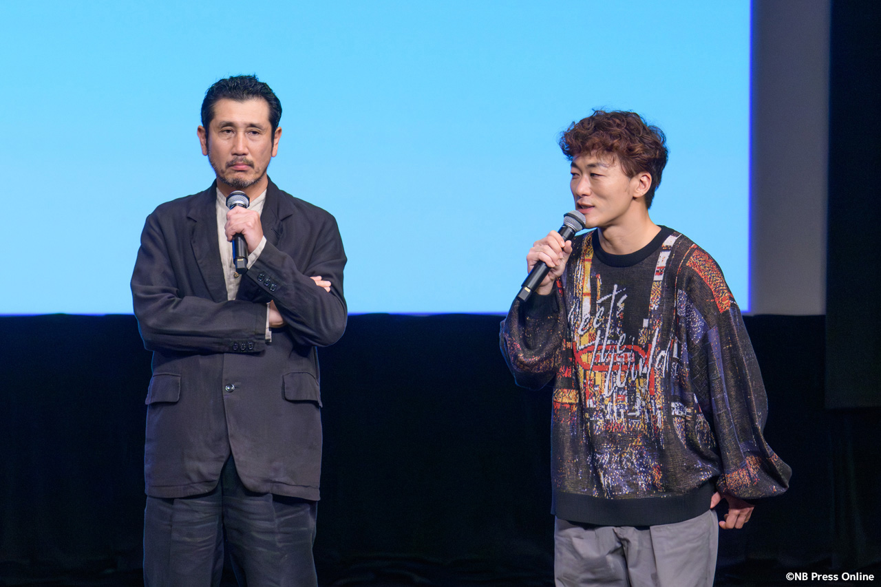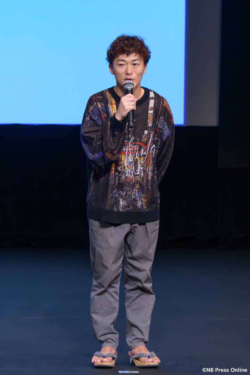 普段の主戦場であるバラエティ番組の現場と比べて映画の撮影現場は「人が多いなと思いました。カメラの周りにすごいたくさんの人がいて新鮮でした」と真面目にふり返ったかと思えば、この日の衣装について「なんで僕、板垣さんとレザーが被ってるんだろう…? ってすごく恥ずかしくなってきて、しゃべりたいと思っていたことが全部飛びました。なんでこんな男前の人と被ってるんだろうと…」と悲痛な表情を浮かべる。