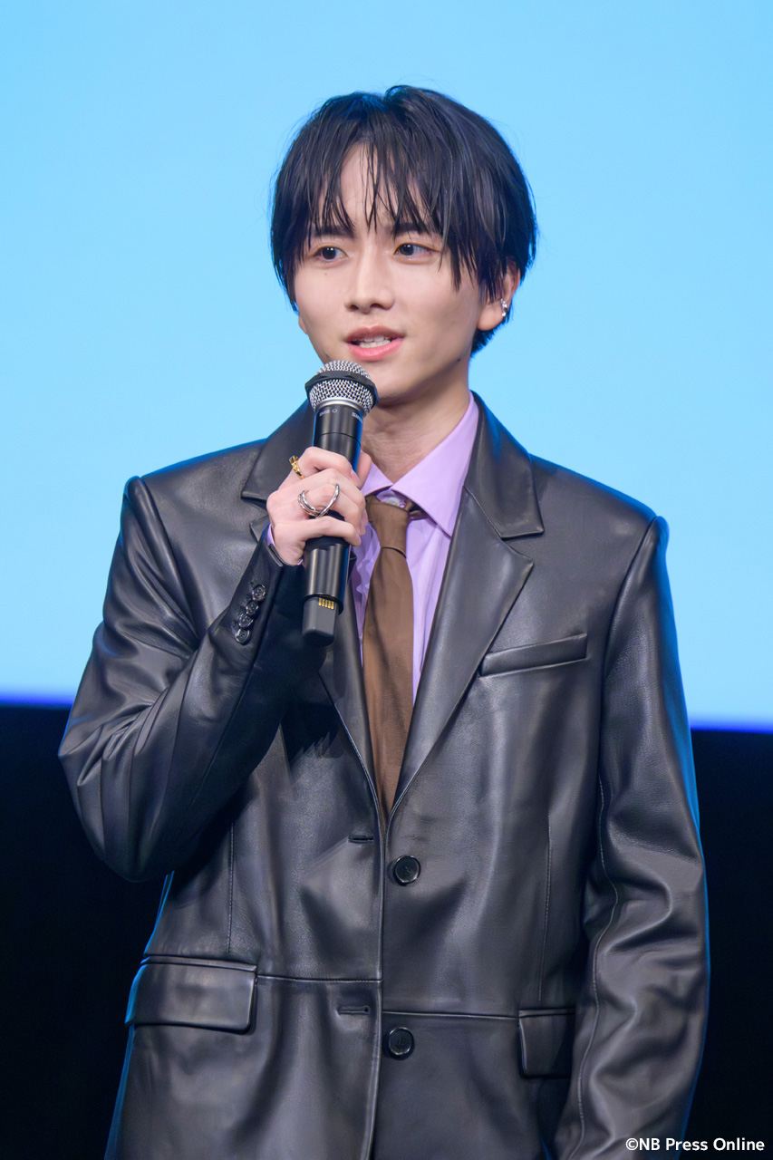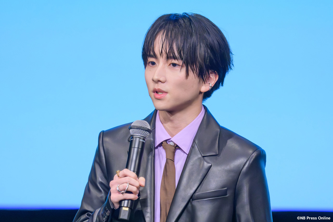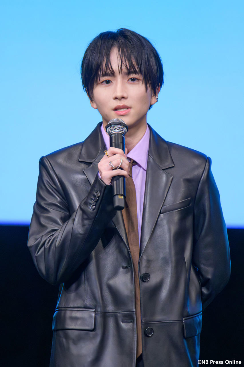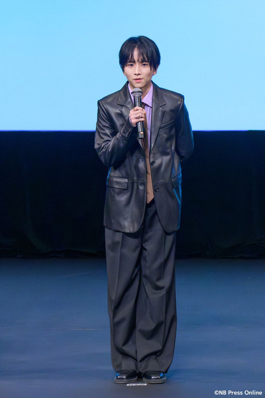 普段の主戦場であるバラエティ番組の現場と比べて映画の撮影現場は「人が多いなと思いました。カメラの周りにすごいたくさんの人がいて新鮮でした」と真面目にふり返ったかと思えば、この日の衣装について「なんで僕、板垣さんとレザーが被ってるんだろう…? ってすごく恥ずかしくなってきて、しゃべりたいと思っていたことが全部飛びました。なんでこんな男前の人と被ってるんだろうと…」と悲痛な表情を浮かべる。
