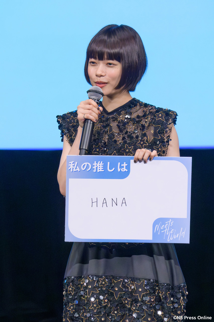 杉咲は「HANA」と書かれたフリップを見せ、オーディション番組「No No Girls」から生まれたガールズグループで自身と同じ名前の「HANA」への愛を熱弁!