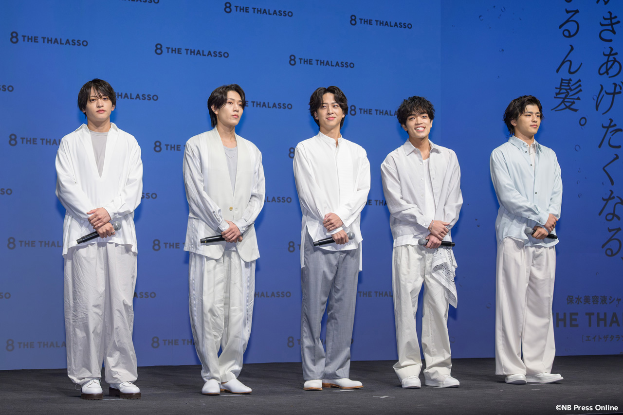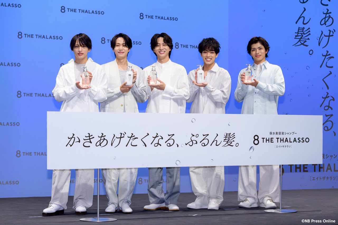 2025年9月22日、東京ポートシティ竹芝ポートホールにて、ヘアケアブランド「8 THE THALASSO(エイト・ザ・タラソ)」新CM発表会が行われ、CMキャラクターを務めるtimeleszのメンバーである寺西拓人、原嘉孝、橋本将生、猪俣周杜、篠塚大輝の5人が登壇した。