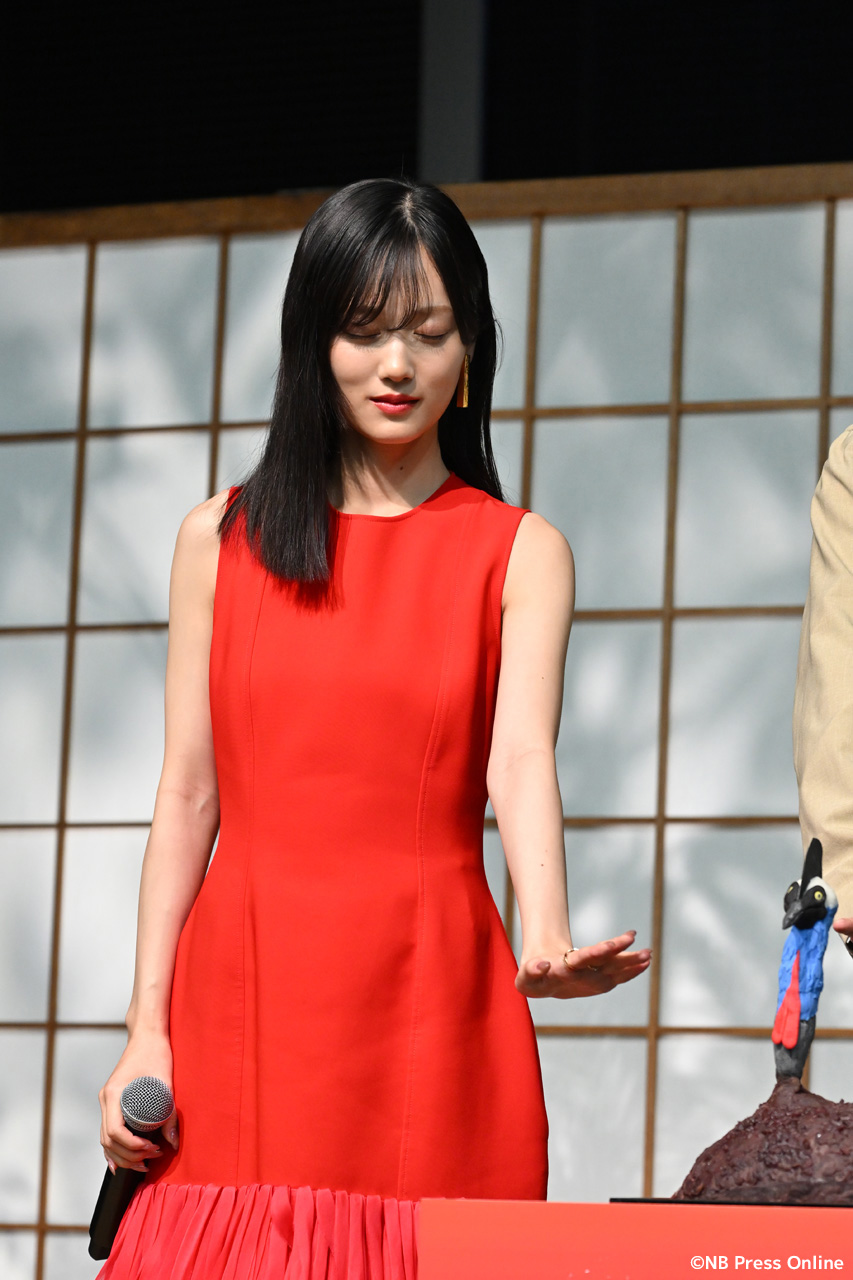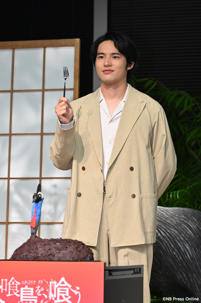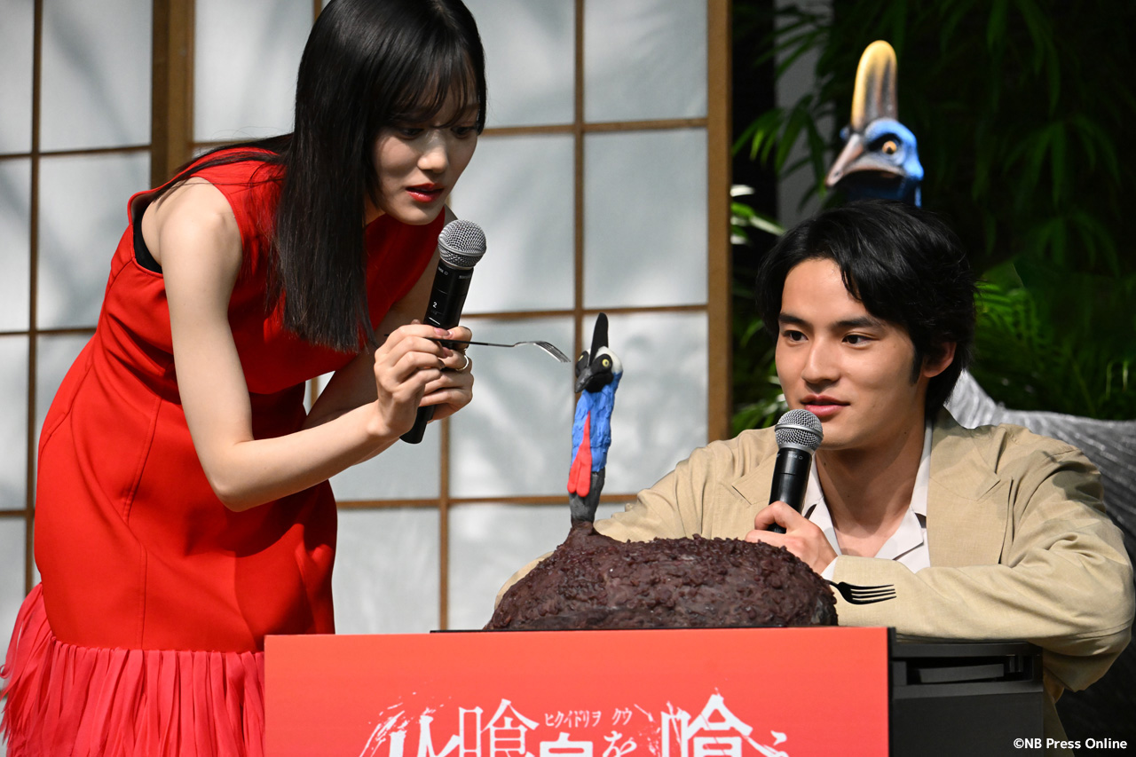 ステージには、映画のモチーフである「火喰鳥」を模した巨大なマスコットが設置されており、宮舘が「当たり前のように低い鳥がいるんですけども」と触れると、MCから「これ100万円するらしいですよ」という驚きの情報が明かされた。
