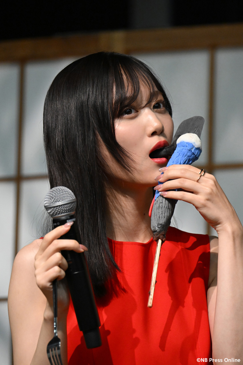 山下は“火喰鳥おはぎ”の首部分を抜き取り、火喰鳥のくちばしをガブリ。
