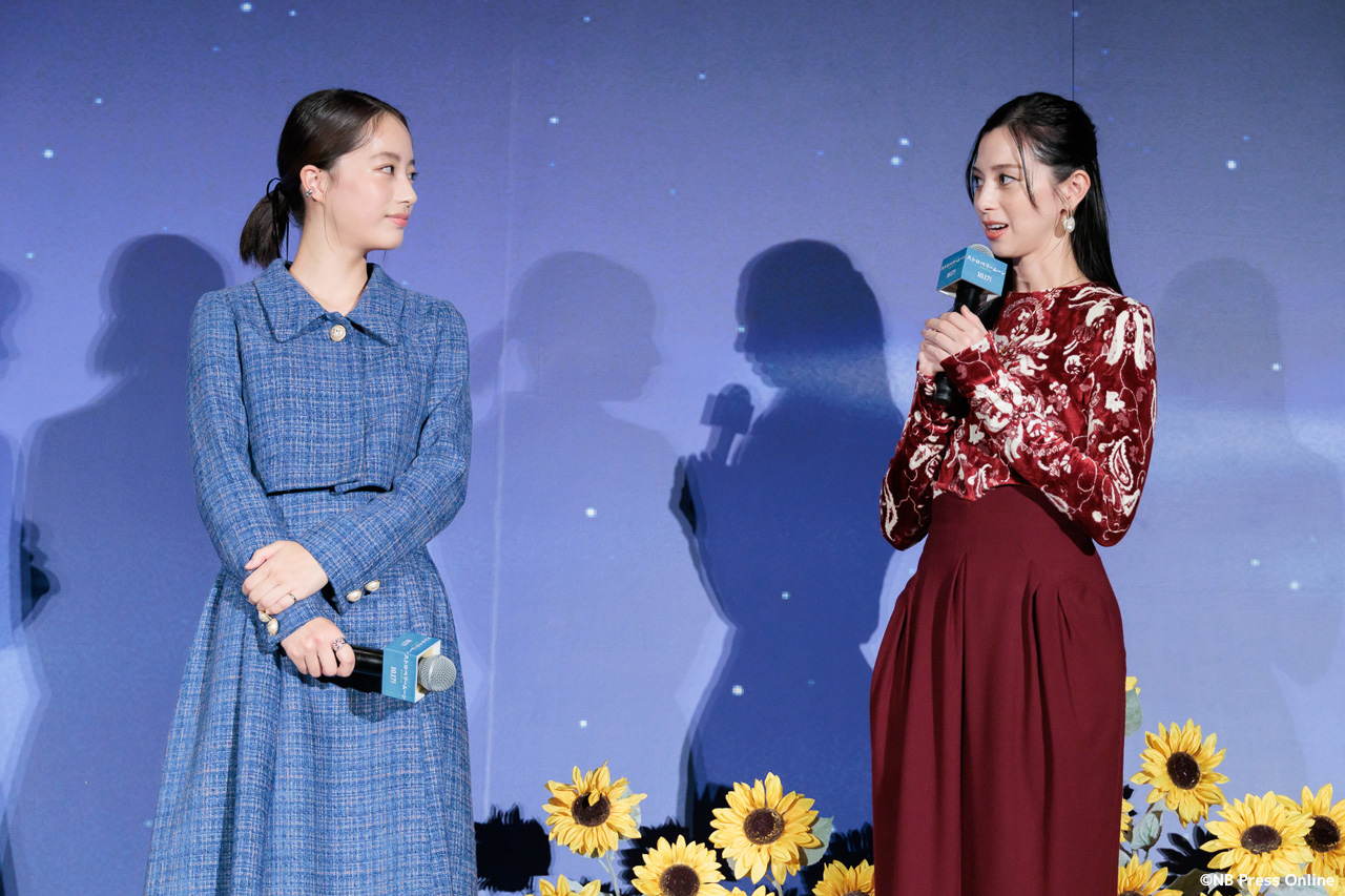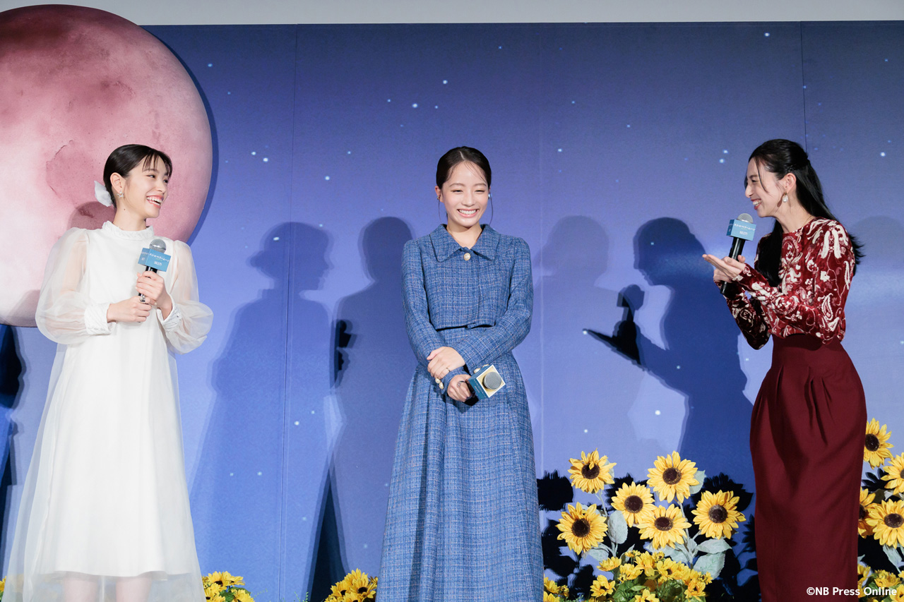 中条は、役作りのために、事前に見たみんなの映像がとても良く、その作品を良くできるようにと常に考えていたという。撮影期間中、高校生時代の萌役の當真と会う機会が少なかったため、「ずっと携帯の待ち受けを、萌ちゃんにしていました」と、當真の写真を自身の携帯の待ち受けにしていたという驚きのエピソードを披露した。