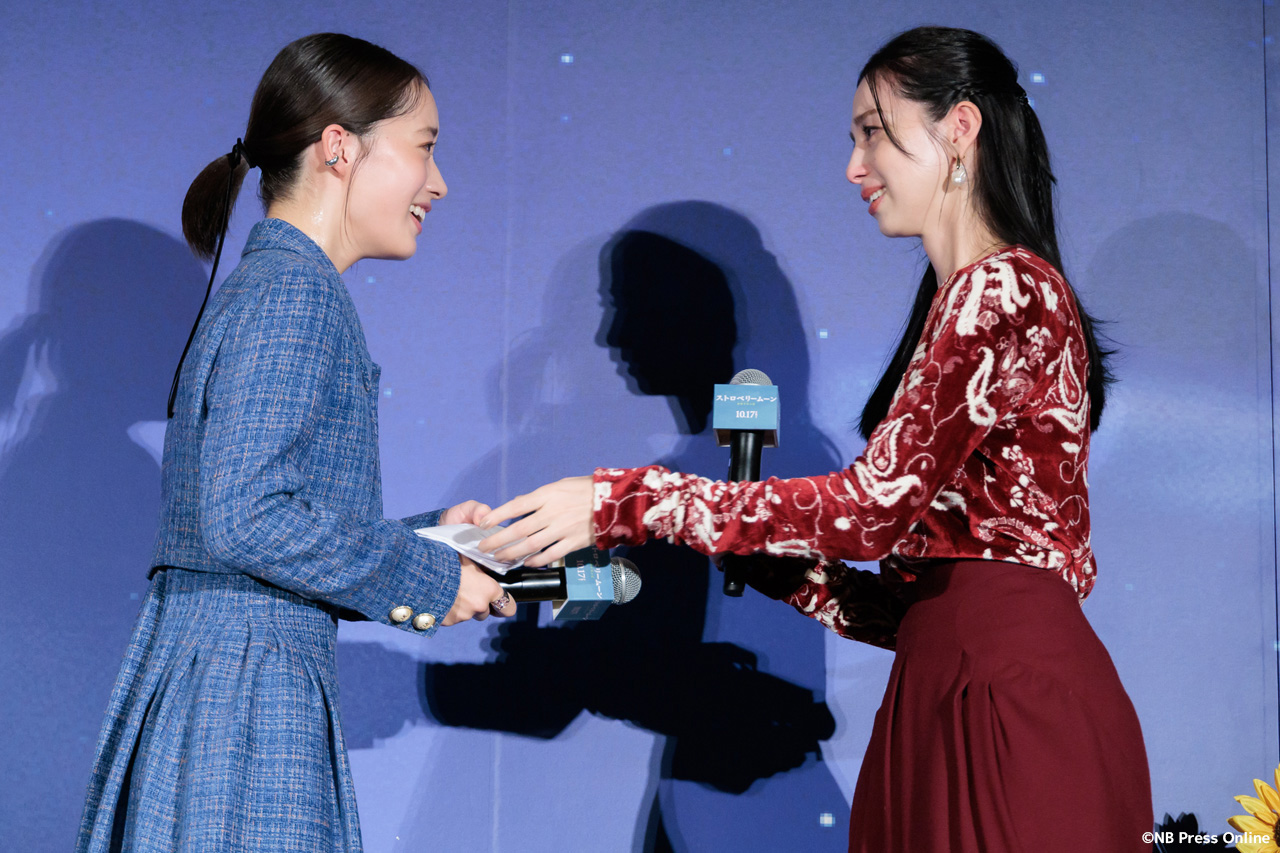 高遠麗の13年後を演じた中条あやみは、今年の自分のいる地域からは「ストロベリームーン」が見られなかったとしながらも、「こうやって今日あの大きいストロベリームーンが見れてすごく嬉しい。なんかいいことがありそうだなって思ってます」と心境を語った。
