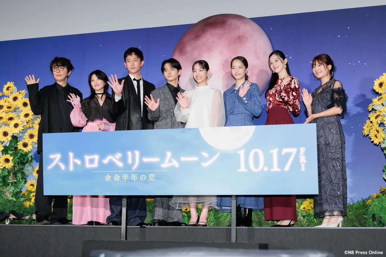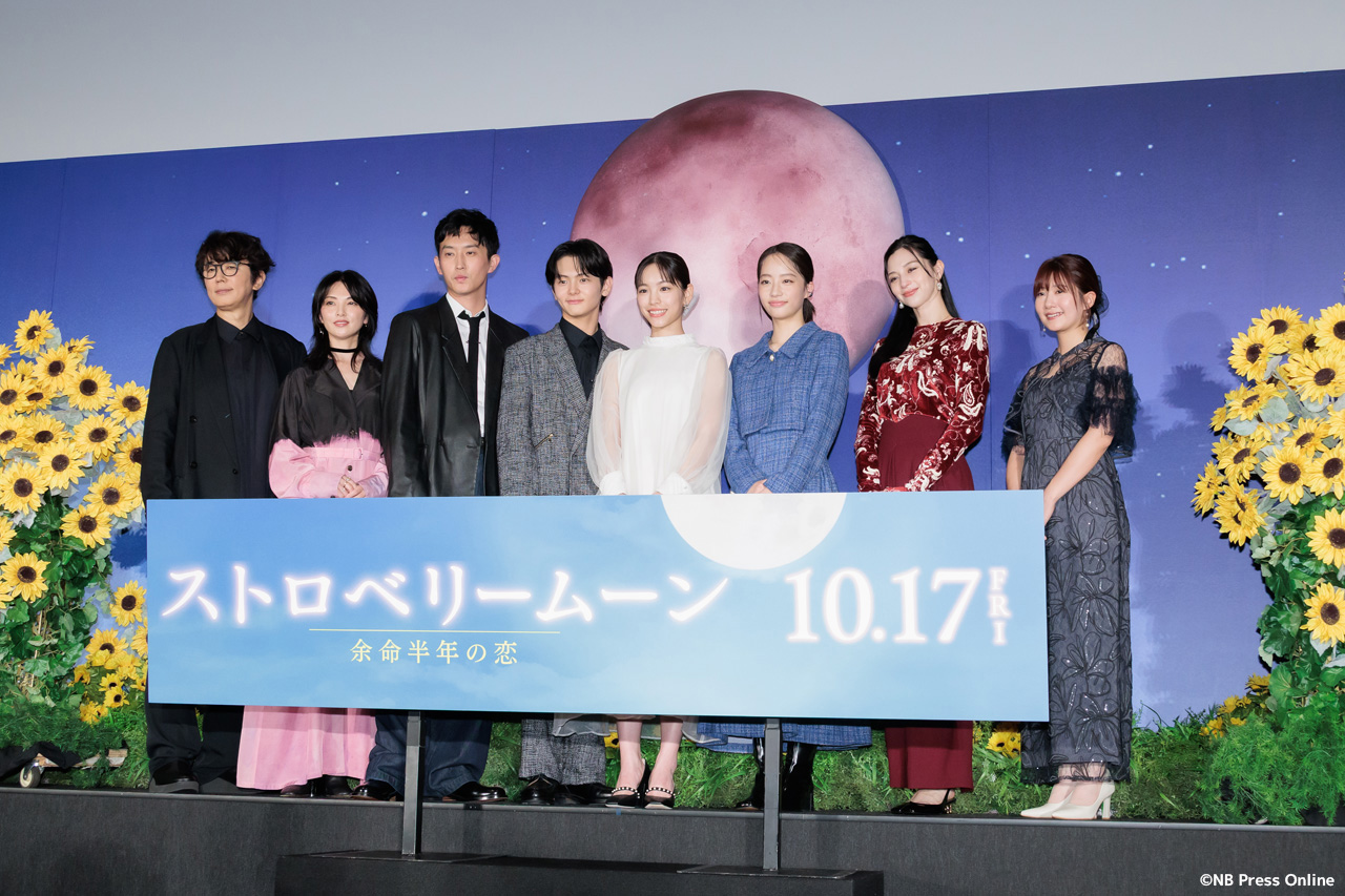 2025年9月22日、丸の内ピカデリーにて、映画『ストロベリームーン 余命半年の恋』完成披露試写会が行われ、當真あみ、齋藤潤、池端杏慈、杉野遥亮、中条あやみ、田中麗奈、ユースケ・サンタマリア、酒井麻衣監督が登壇。(フォト&動画)